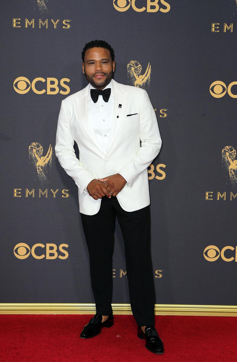 Donald Glover wore a purple tuxedo, while Anthony Anderson ("black-ish") sported an Armani white tuxedo jacket. His co-star Tracee Ellis Ross opted for silver sequins and a feather hem from Chanel.