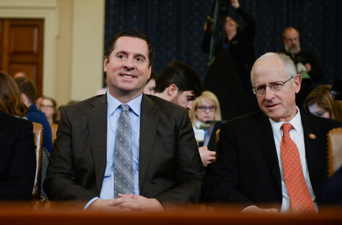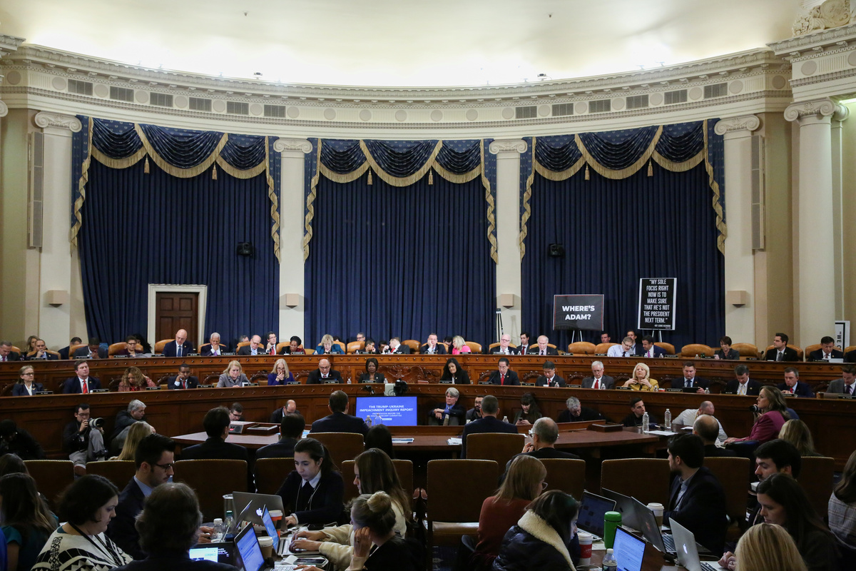A U.S. Capitol police officer removes a supporter of U.S. President Donald Trump as he yells criticism at House Judiciary Committee Chairman Rep. Jerrold Nadler at the start of a House Judiciary Committee hearing to receive counsel presentations of evidence on the impeachment inquiry into U.S. President Donald Trump on Capitol Hill in Washington, U.S., December 9, 2019. REUTERS/Erin ScottHouse Intelligence Committee Republican ranking member Rep. Devin Nunes (R-CA) sits with Rep. Mike Conaway (R-TX) in the audience at the start of a House Judiciary Committee hearing to receive counsel presentations of evidence on the impeachment inquiry into U.S. President Donald Trump on Capitol Hill in Washington, U.S., December 9, 2019. REUTERS/Erin ScottDemocratic counsel Barry Berke delivers an opening statement during a House Judiciary Committee hearing to receive counsel presentations of evidence on the impeachment inquiry into U.S. President Donald Trump on Capitol Hill in Washington, U.S., December 9, 2019. REUTERS/Erin ScottDemocratic counsel Barry Berke delivers an opening statement during a House Judiciary Committee hearing to receive counsel presentations of evidence on the impeachment inquiry into U.S. President Donald Trump on Capitol Hill in Washington, U.S., December 9, 2019. REUTERS/Erin ScottA supporter of U.S. President Donald Trump screams criticism at House Judiciary Committee Chairman Rep. Jerrold Nadler at the start of a House Judiciary Committee hearing to receive counsel presentations of evidence on the impeachment inquiry into U.S. President Donald Trump on Capitol Hill in Washington, U.S., December 9, 2019. REUTERS/Jonathan ErnstHouse Judiciary Committee Chairman Rep. Jerrold Nadler (D-NY) settles in for a House Judiciary Committee hearing to receive counsel presentations of evidence on the impeachment inquiry into U.S. President Donald Trump on Capitol Hill in Washington, U.S., December 9, 2019. REUTERS/Jonathan ErnstU.S. Capitol police officers remove a yelling supporter of U.S. President Donald Trump as he screams criticism at House Judiciary Committee Chairman Rep. Jerrold Nadler at the start of a House Judiciary Committee hearing to receive counsel presentations of evidence on the impeachment inquiry into U.S. President Donald Trump on Capitol Hill in Washington, U.S., December 9, 2019. REUTERS/Jonathan ErnstA supporter of U.S. President Donald Trump screams criticism at House Judiciary Committee Chairman Rep. Jerrold Nadler at the start of a House Judiciary Committee hearing to receive counsel presentations of evidence on the impeachment inquiry into U.S. President Donald Trump on Capitol Hill in Washington, U.S., December 9, 2019. REUTERS/Jonathan ErnstThe U.S. Capitol dome is shrouded in early-morning mist on another day of the continued impeachment inquiry hearings into President Donald Trump's dealings with Ukraine on Capitol Hill in Washington, U.S., December 9, 2019. REUTERS/Loren Elliott