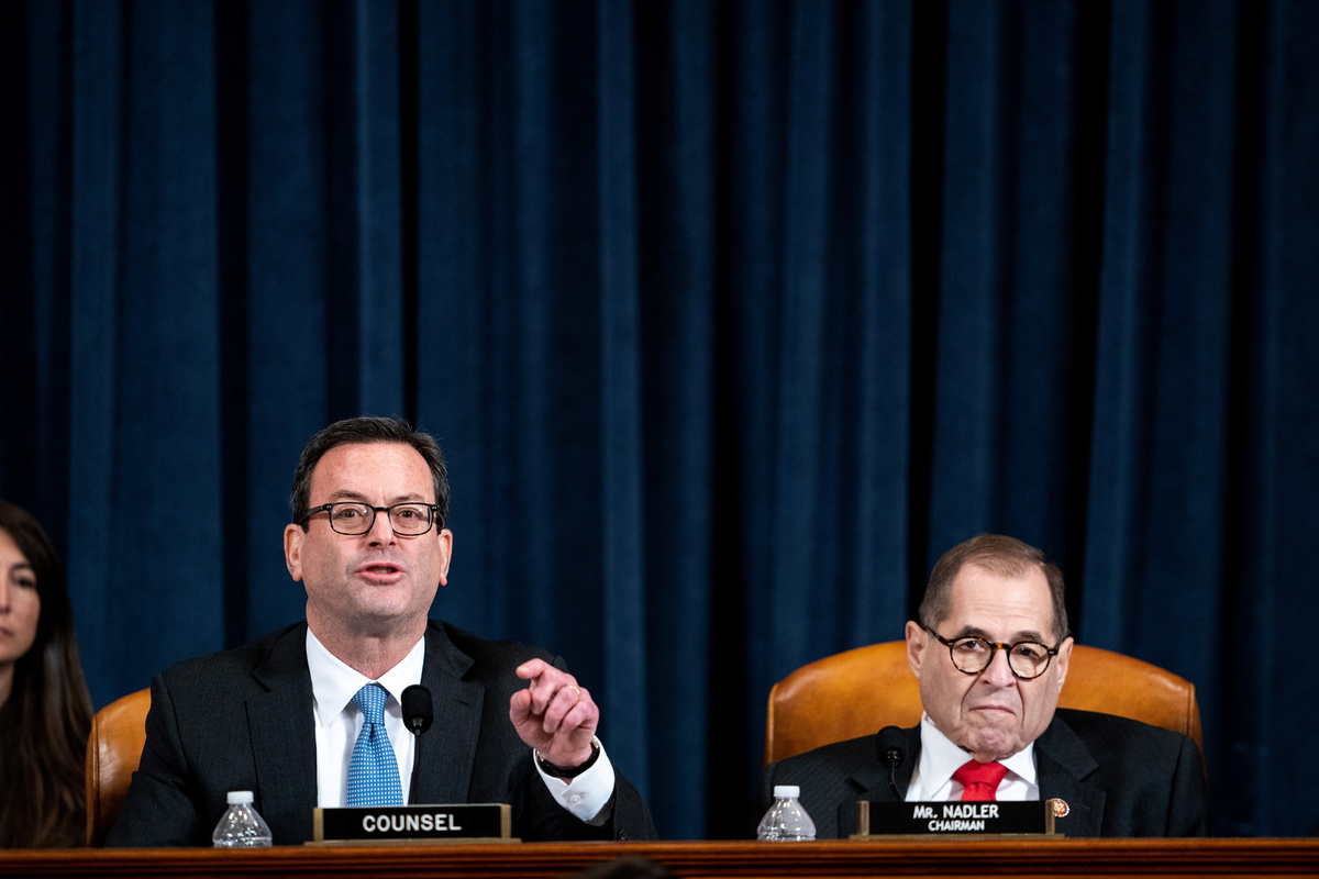 Barry Berke, special counsel to the House Judiciary Committee, with House Judiciary Committee Chairman Jerrold "Jerry" Nadler (D-NY), speaks during a House Judiciary Committee hearing on impeachment on Capitol Hill in Washington, D.C., U.S., December 9, 2019. Erin Schaff/Pool via REUTERS