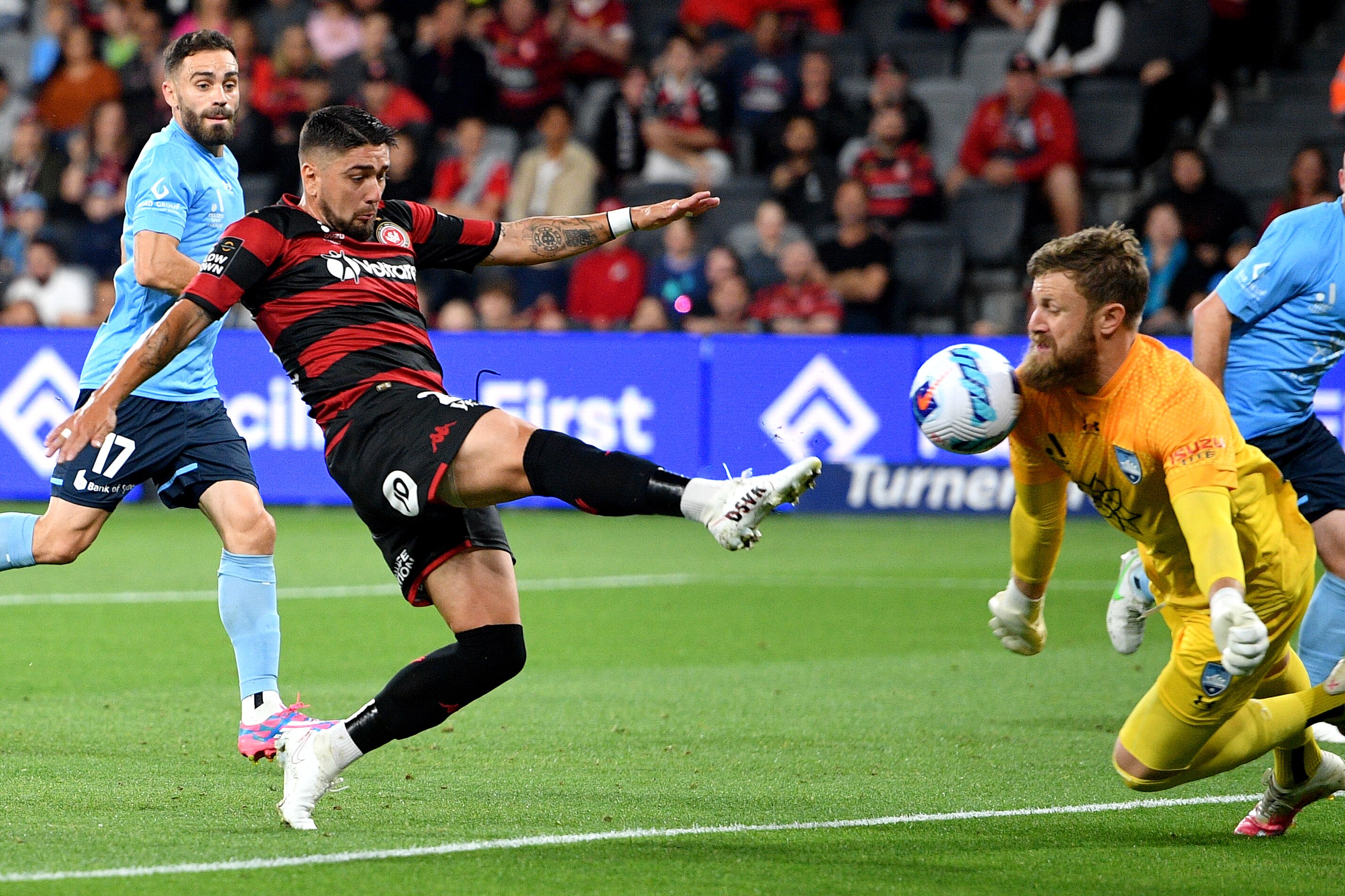 The ball bounced around the six-yard box after Mejías's save but Sydney was unable to get a threatening shot on goal.