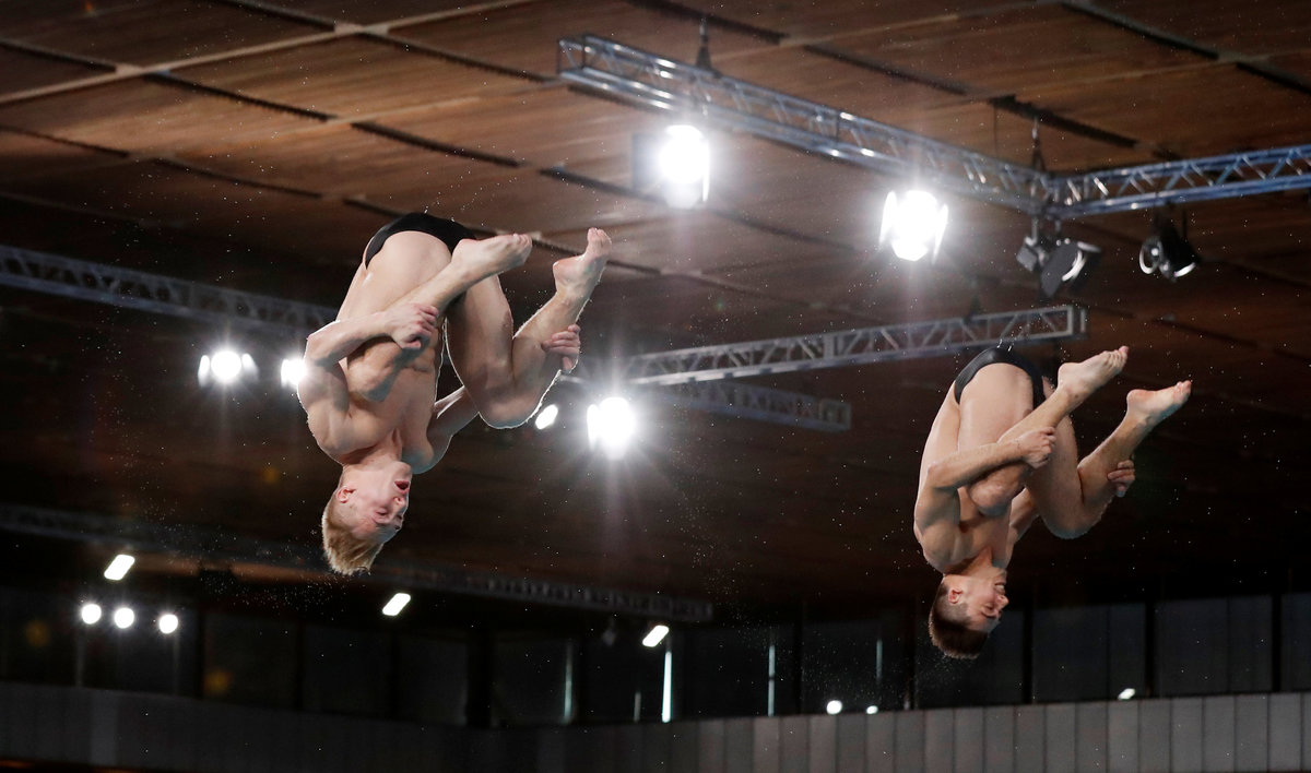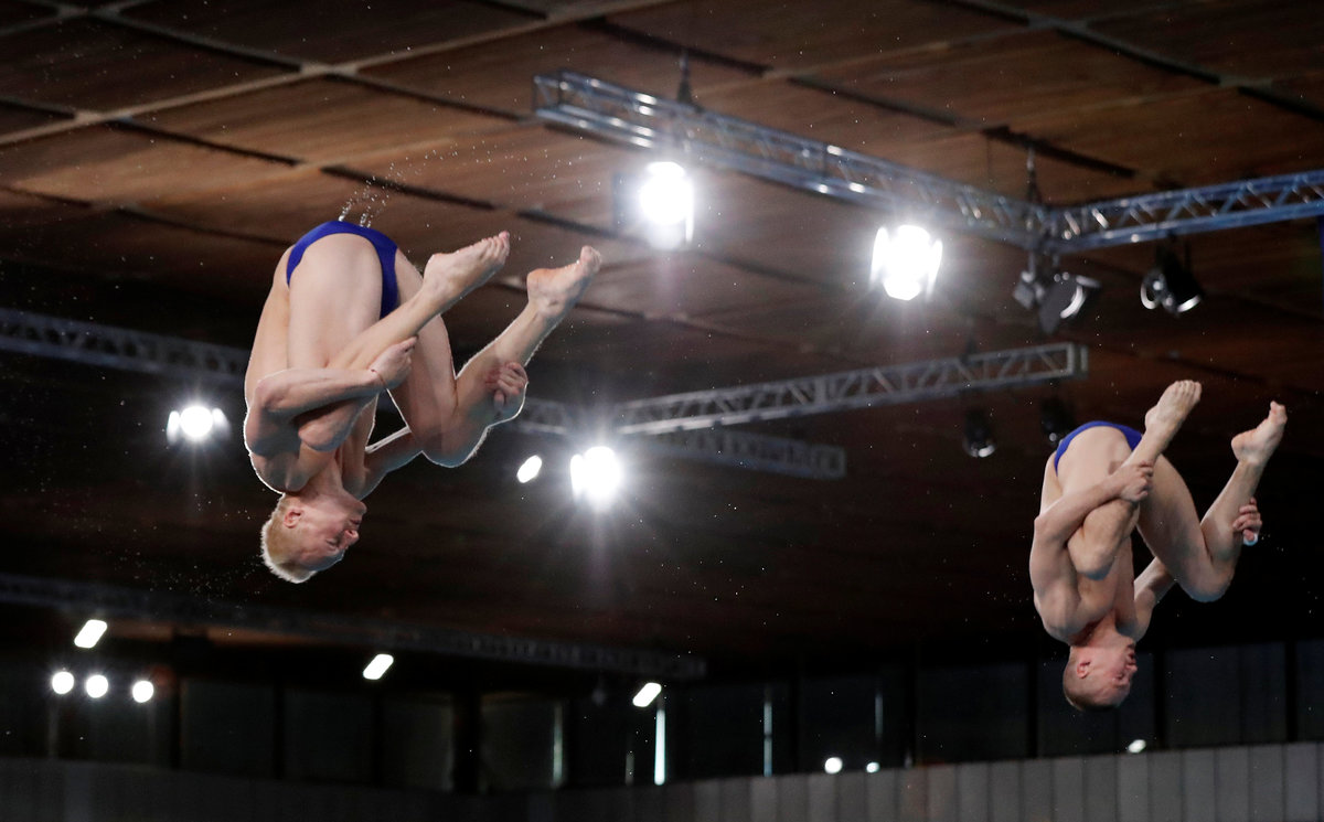 GLASGOW (Reuters) - Russia's Ilia Zakharov and Evgenii Kuznetsov, one of the outstanding partnerships in diving, won their seventh European title together in a dramatic finale to the synchronised three-metre springboard on Friday.