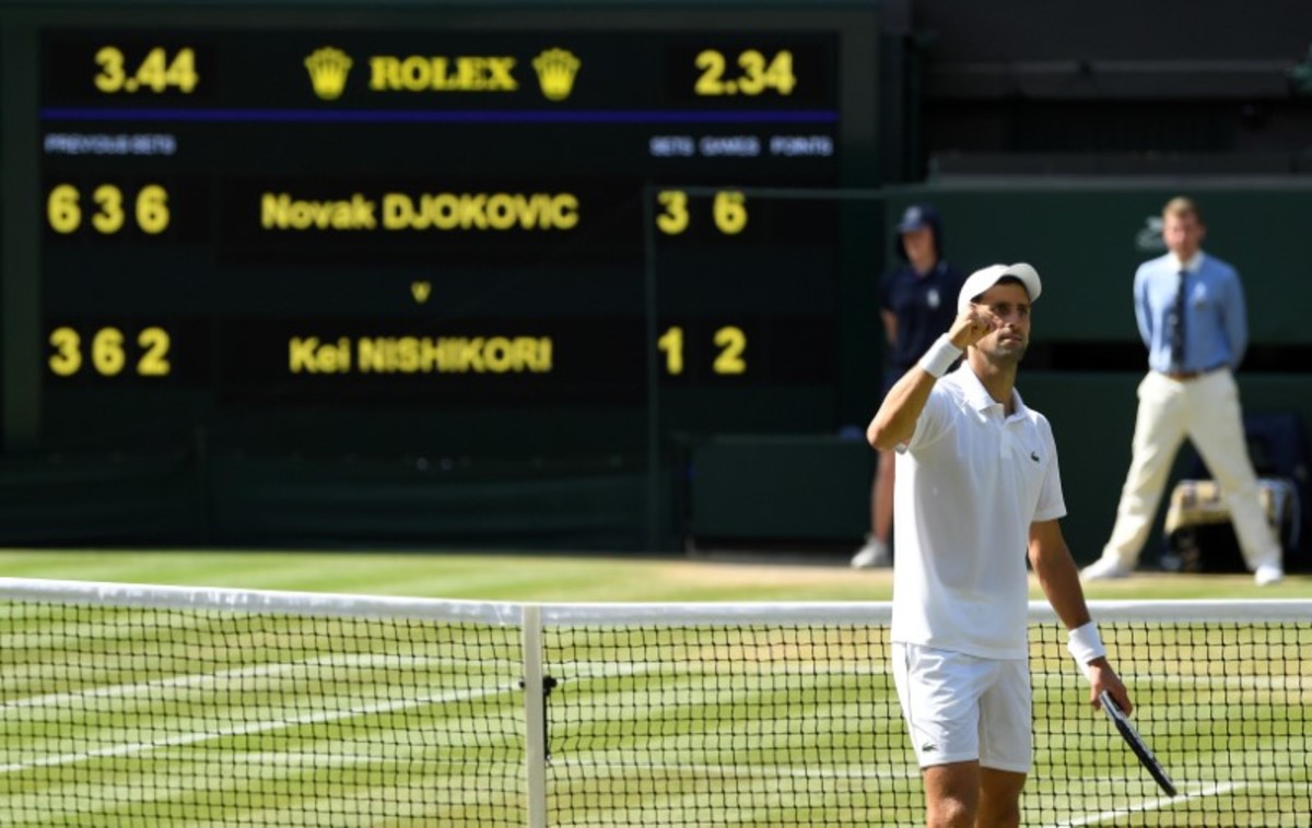 With the Japanese serving to stay in the match, Djokovic wrapped things up after 2-1/2 hours on the first match point to secure his first Wimbledon semi-final since 2015.