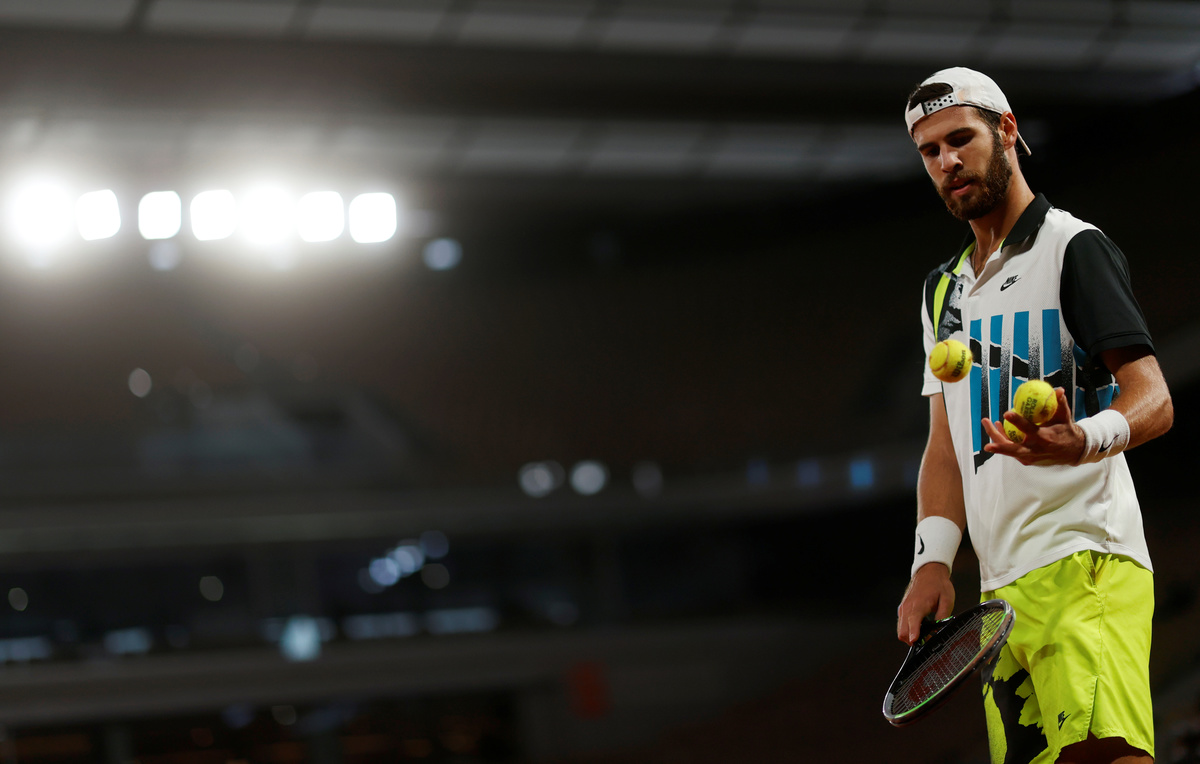Top seed Djokovic lunged to make a service return in the eighth game against Karen Khachanov in their French Open fourth-round clash and the ball ricocheted off his frame and straight into the head of a male line judge.
