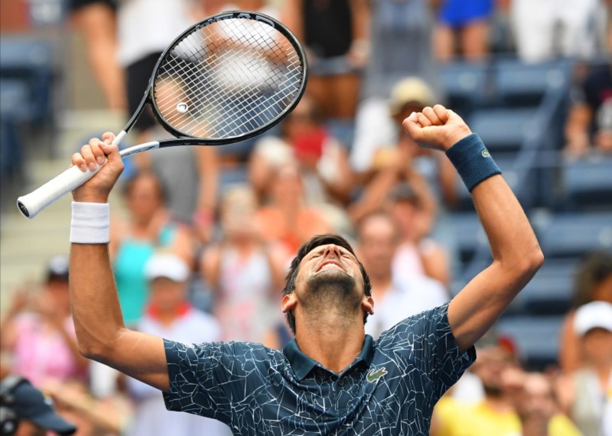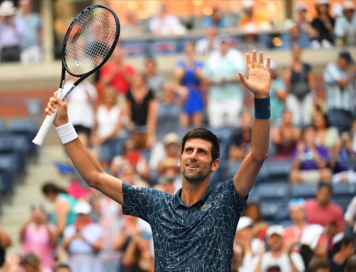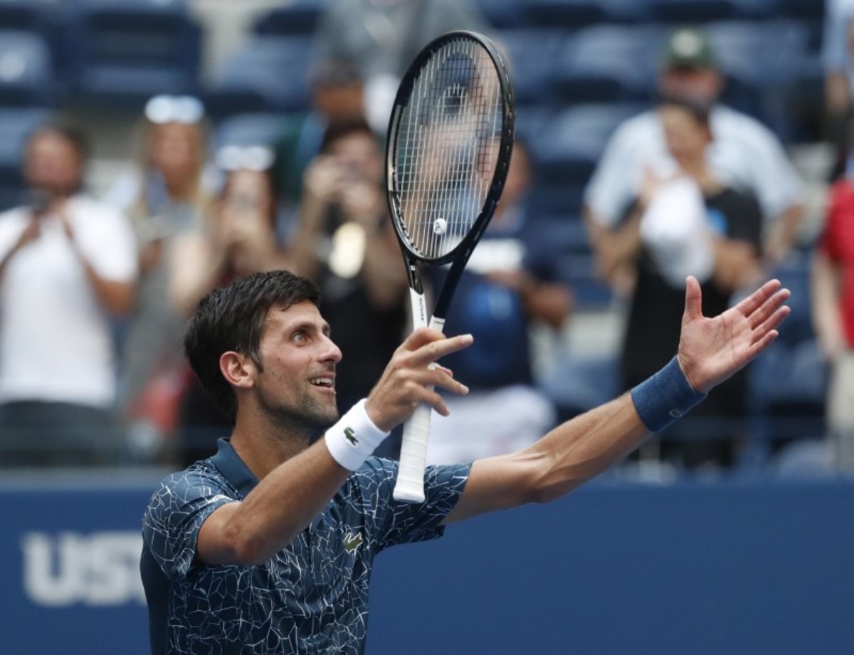 Aug 28, 2018; New York, NY, USA; Novak Djokovic of Serbia after beating Marton Fucsovics of Hungary in a first round match on day two of the 2018 U.S. Open tennis tournament at USTA Billie Jean King National Tennis Center. Mandatory Credit: Robert Deutsch-USA TODAY SportsAug 28, 2018; New York, NY, USA; Novak Djokovic of Serbia celebrates match point against Marton Fucsovics of Hungary in a first round match on day two of the 2018 U.S. Open tennis tournament at USTA Billie Jean King National Tennis Center. Mandatory Credit: Jerry Lai-USA TODAY Sports