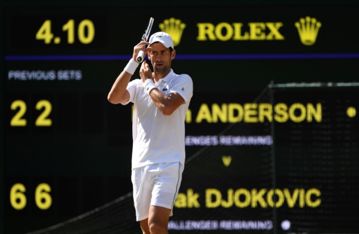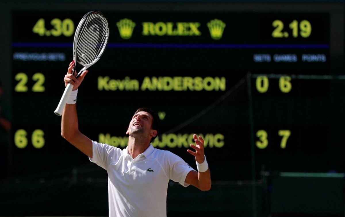 Tennis - Wimbledon - All England Lawn Tennis and Croquet Club, London, Britain - July 15, 2018 Serbia's Novak Djokovic in action during the men's singles final against South Africa's Kevin Anderson REUTERS/Tony O'BrienTennis - Wimbledon - All England Lawn Tennis and Croquet Club, London, Britain - July 15, 2018 Serbia's Novak Djokovic celebrates winning the men's singles final against South Africa's Kevin Anderson REUTERS/Tony O'BrienTennis - Wimbledon - All England Lawn Tennis and Croquet Club, London, Britain - July 15, 2018 Serbia's Novak Djokovic in action during the men's singles final against South Africa's Kevin Anderson. REUTERS/Andrew CouldridgeTennis - Wimbledon - All England Lawn Tennis and Croquet Club, London, Britain - July 15, 2018 South Africa's Kevin Anderson in action during the men's singles final against Serbia's Novak Djokovic REUTERS/Tony O'BrienTennis - Wimbledon - All England Lawn Tennis and Croquet Club, London, Britain - July 15, 2018 Serbia's Novak Djokovic in action during the men's singles final against South Africa's Kevin Anderson. REUTERS/Andrew CouldridgeTennis - Wimbledon - All England Lawn Tennis and Croquet Club, London, Britain - July 15, 2018 Serbia's Novak Djokovic reacts during the men's singles final against South Africa's Kevin Anderson REUTERS/Tony O'BrienTennis - Wimbledon - All England Lawn Tennis and Croquet Club, London, Britain - July 15, 2018 Serbia's Novak Djokovic reacts during the men's singles final against South Africa's Kevin Anderson REUTERS/Tony O'BrienTennis - Wimbledon - All England Lawn Tennis and Croquet Club, London, Britain - July 15, 2018 Serbia's Novak Djokovic in action during the men's singles final against South Africa's Kevin Anderson REUTERS/Tony O'BrienTennis - Wimbledon - All England Lawn Tennis and Croquet Club, London, Britain - July 15, 2018 Serbia's Novak Djokovic celebrates winning the men's singles final against South Africa's Kevin Anderson . REUTERS/Andrew CouldridgeTennis - Wimbledon - All England Lawn Tennis and Croquet Club, London, Britain - July 15, 2018 Serbia's Novak Djokovic celebrates winning the men's singles final against South Africa's Kevin Anderson . REUTERS/Andrew CouldridgeTennis - Wimbledon - All England Lawn Tennis and Croquet Club, London, Britain - July 15, 2018. Spectators watch the men's singles final between Serbia's Novak Djokovic and South Africa's Kevin Anderson on a giant screen from Murray Mound. REUTERS/Andrew BoyersTennis - Wimbledon - All England Lawn Tennis and Croquet Club, London, Britain - July 15, 2018 Serbia's Novak Djokovic during the men's singles final against South Africa's Kevin Anderson REUTERS/Tony O'BrienTennis - Wimbledon - All England Lawn Tennis and Croquet Club, London, Britain - July 15, 2018. Spectators watch the men's singles final between Serbia's Novak Djokovic and South Africa's Kevin Anderson on a giant screen from Murray Mound. REUTERS/Andrew Boyers