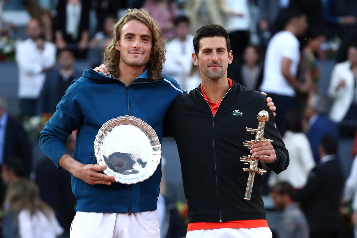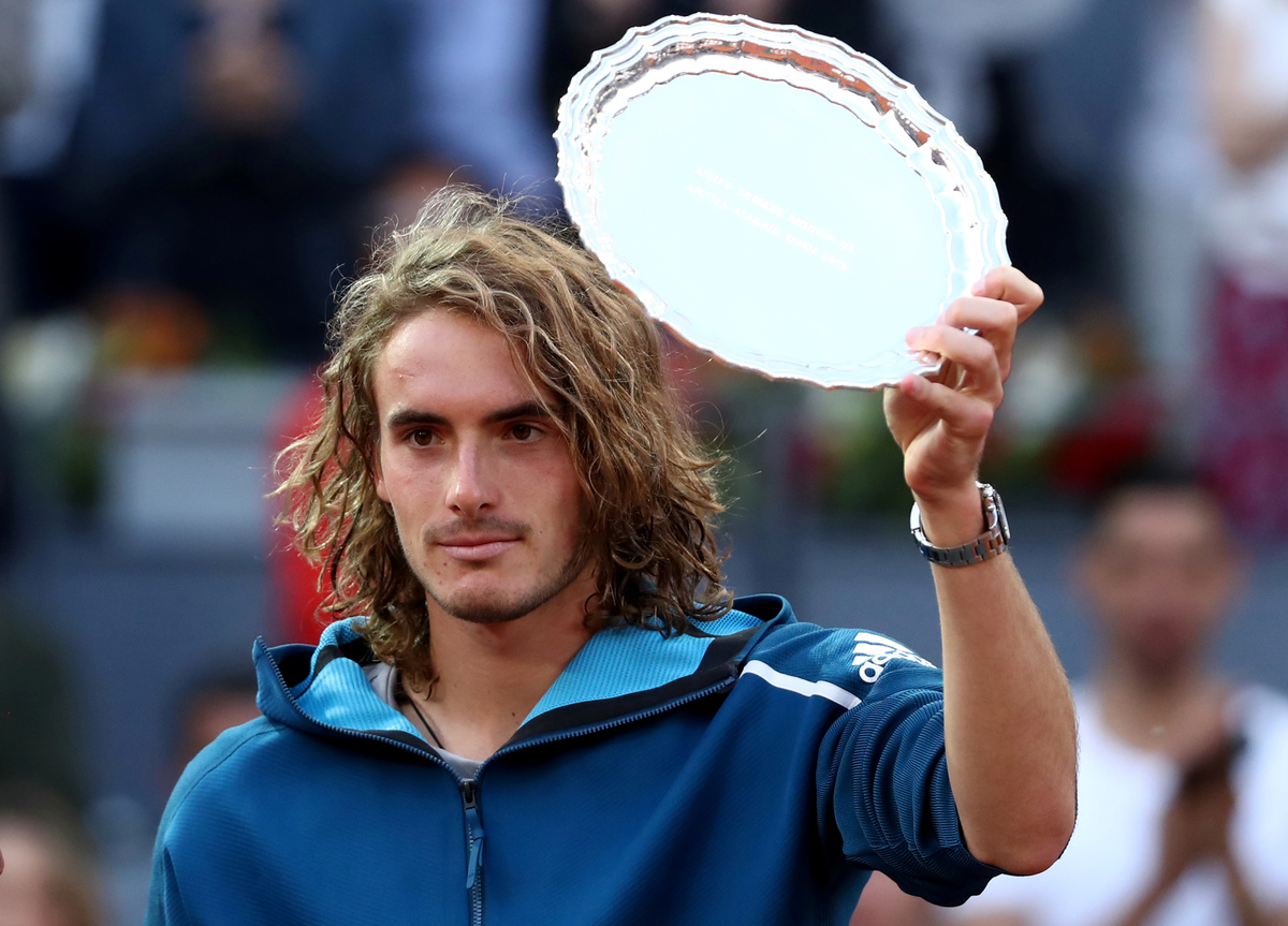 He had not dropped a service game all week in Madrid and raced into a 3-0 lead as he broke his opponent’s first service game under blue skies and soaring temperatures in the Spanish capital, with his trademark backhand down the line causing Tsitsipas problems throughout.