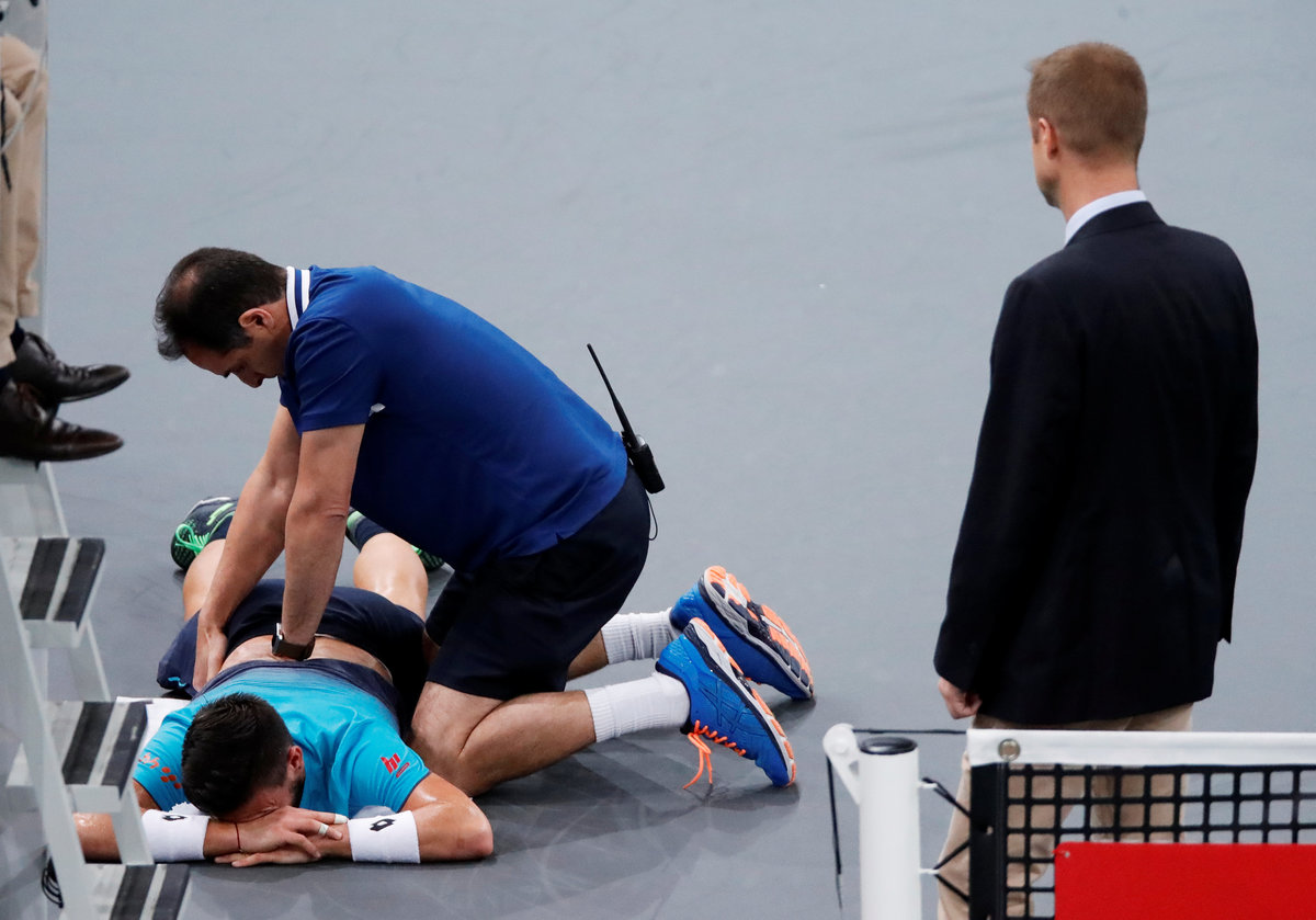 Dzumhur suffered a tweak to his lower back when 4-1 down in the opening set. He battled on in an 11-minute sixth game but was eventually broken for a second time and, though he continued after treatment and taking pain-killers, there was no way back.