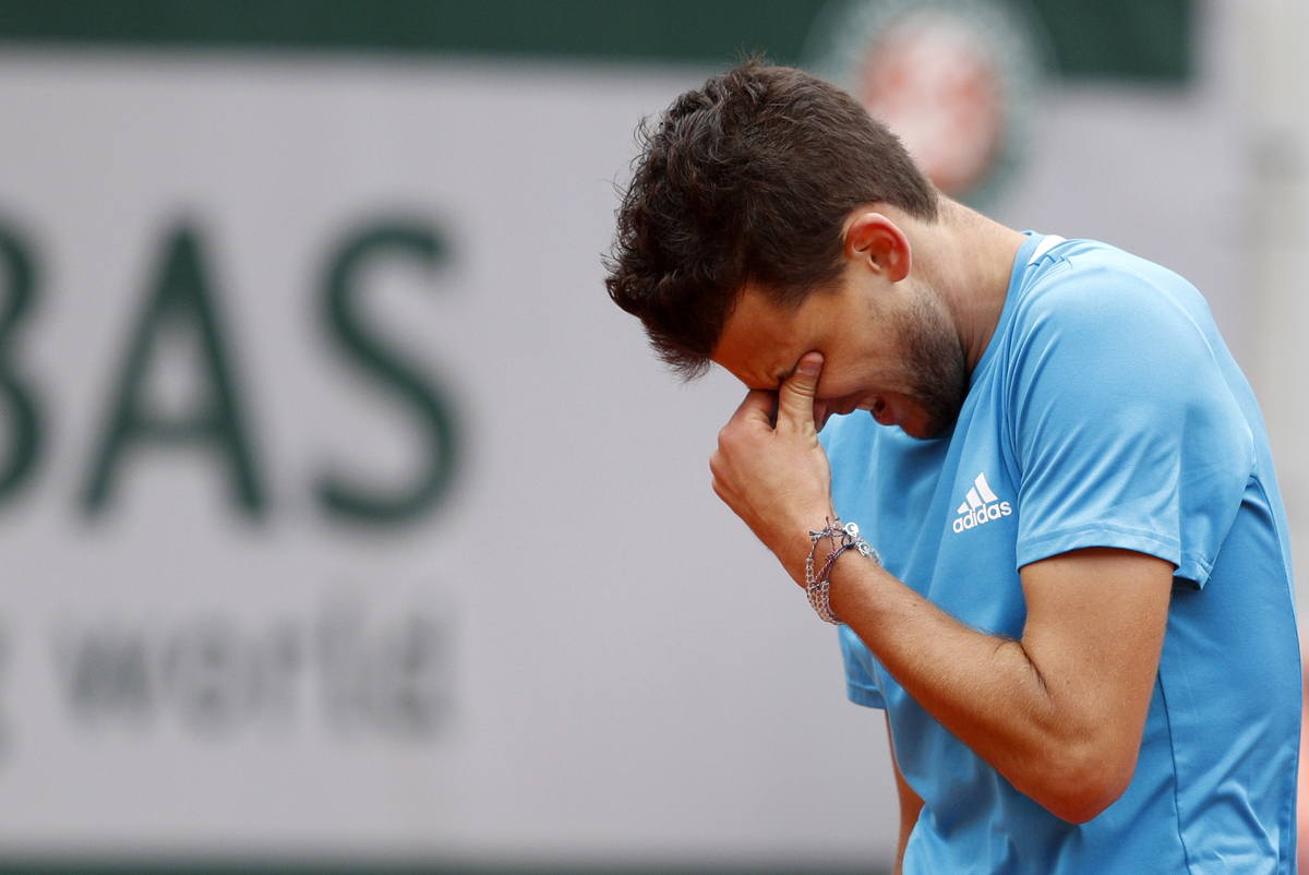 With dark clouds closing in Thiem broke serve with a huge forehand early in the third, shortly before the rain started again.