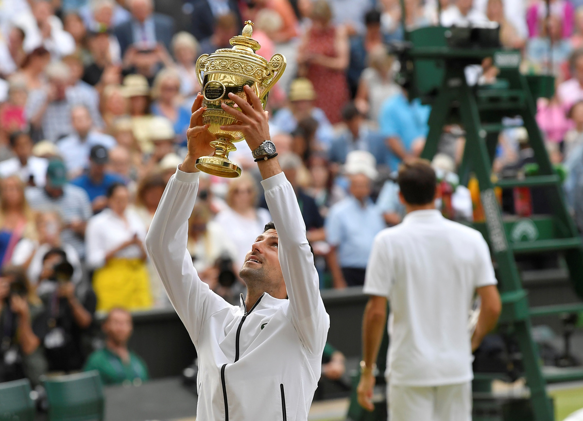 World number one Djokovic outlasted Roger Federer to claim a fifth Wimbledon title in the longest singles final in the tournament's 133-year history on Sunday, leaving him four slams behind the Swiss and two adrift of Rafa Nadal.