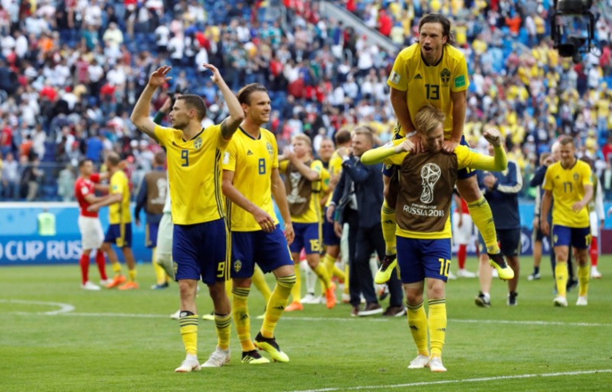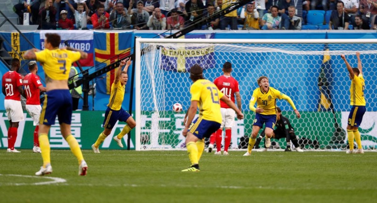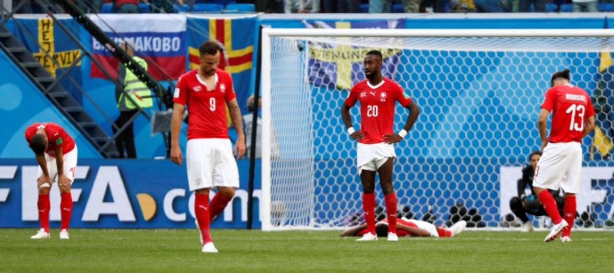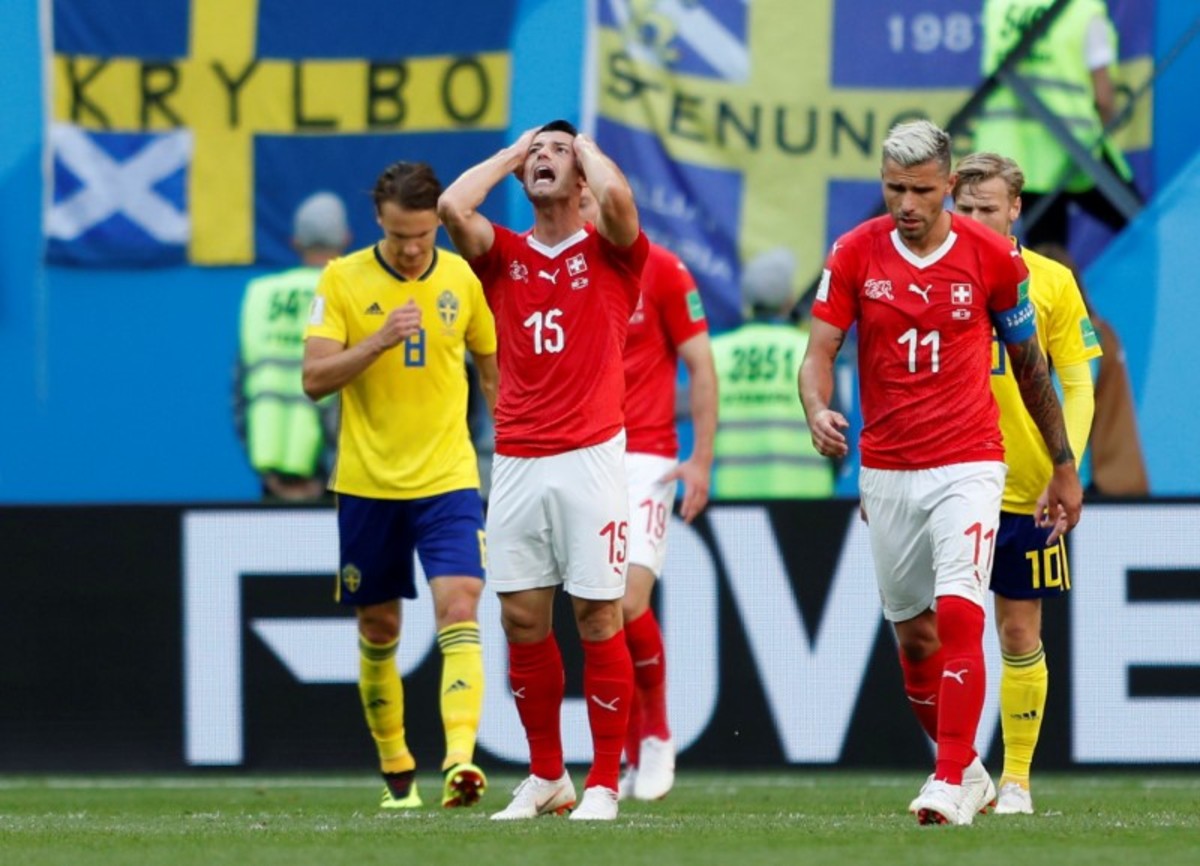 Soccer Football - World Cup - Round of 16 - Sweden vs Switzerland - Saint Petersburg Stadium, Saint Petersburg, Russia - July 3, 2018 Sweden players celebrate victory after the match REUTERS/Damir SagoljSoccer Football - World Cup - Round of 16 - Sweden vs Switzerland - Saint Petersburg Stadium, Saint Petersburg, Russia - July 3, 2018 Sweden fans celebrates victory after the match REUTERS/Damir SagoljSoccer Football - World Cup - Round of 16 - Sweden vs Switzerland - Saint Petersburg Stadium, Saint Petersburg, Russia - July 3, 2018 Switzerland's Granit Xhaka, Manuel Akanji and Ricardo Rodriguez look dejected at the end of the match REUTERS/Jason CairnduffSoccer Football - World Cup - Round of 16 - Sweden vs Switzerland - Saint Petersburg Stadium, Saint Petersburg, Russia - July 3, 2018 Switzerland players look dejected after the match REUTERS/Max RossiSoccer Football - World Cup - Round of 16 - Sweden vs Switzerland - Saint Petersburg Stadium, Saint Petersburg, Russia - July 3, 2018 Switzerland fans look dejected after the match REUTERS/Henry RomeroSoccer Football - World Cup - Round of 16 - Sweden vs Switzerland - Saint Petersburg Stadium, Saint Petersburg, Russia - July 3, 2018 Sweden's Albin Ekdal misses a chance to score REUTERS/Jason CairnduffSoccer Football - World Cup - Round of 16 - Sweden vs Switzerland - Saint Petersburg Stadium, Saint Petersburg, Russia - July 3, 2018 Switzerland's Blerim Dzemaili and Valon Behrami react REUTERS/Lee SmithSoccer Football - World Cup - Round of 16 - Sweden vs Switzerland - Saint Petersburg Stadium, Saint Petersburg, Russia - July 3, 2018 Sweden's Viktor Claesson in action with Switzerland's Yann Sommer and Manuel Akanji REUTERS/Max RossiSoccer Football - World Cup - Round of 16 - Sweden vs Switzerland - Saint Petersburg Stadium, Saint Petersburg, Russia - July 3, 2018 Switzerland's Granit Xhaka, Blerim Dzemaili, Josip Drmic and Valon Behrami in the defensive wall as Sweden's Emil Forsberg shoots at goal from a free kick REUTERS/Damir SagoljSoccer Football - World Cup - Round of 16 - Sweden vs Switzerland - Saint Petersburg Stadium, Saint Petersburg, Russia - July 3, 2018 Switzerland's Michael Lang talks with Xherdan Shaqiri REUTERS/Henry RomeroSoccer Football - World Cup - Round of 16 - Sweden vs Switzerland - Saint Petersburg Stadium, Saint Petersburg, Russia - July 3, 2018 Switzerland's Steven Zuber helps up Sweden's Mikael Lustig REUTERS/Jason CairnduffSoccer Football - World Cup - Round of 16 - Sweden vs Switzerland - Saint Petersburg Stadium, Saint Petersburg, Russia - July 3, 2018 Sweden coach Janne Andersson during the match REUTERS/Damir Sagolj