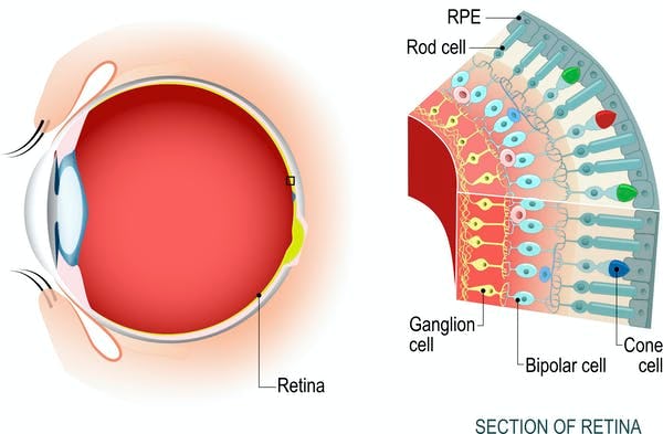 In the back of our eyeballs, human beings’ retinas contain three types of special cone-shaped cells that are responsible for all the colors we can see. When scientists used a technique called electroretinography to measure the way dogs’ eyes react to light, they found that canines have fewer kinds of these cone cells. Compared to people’s three kinds, dogs only have two types of cone receptors.