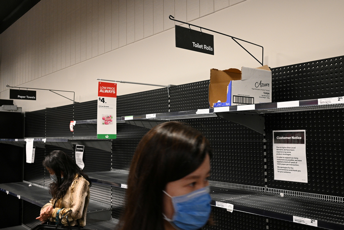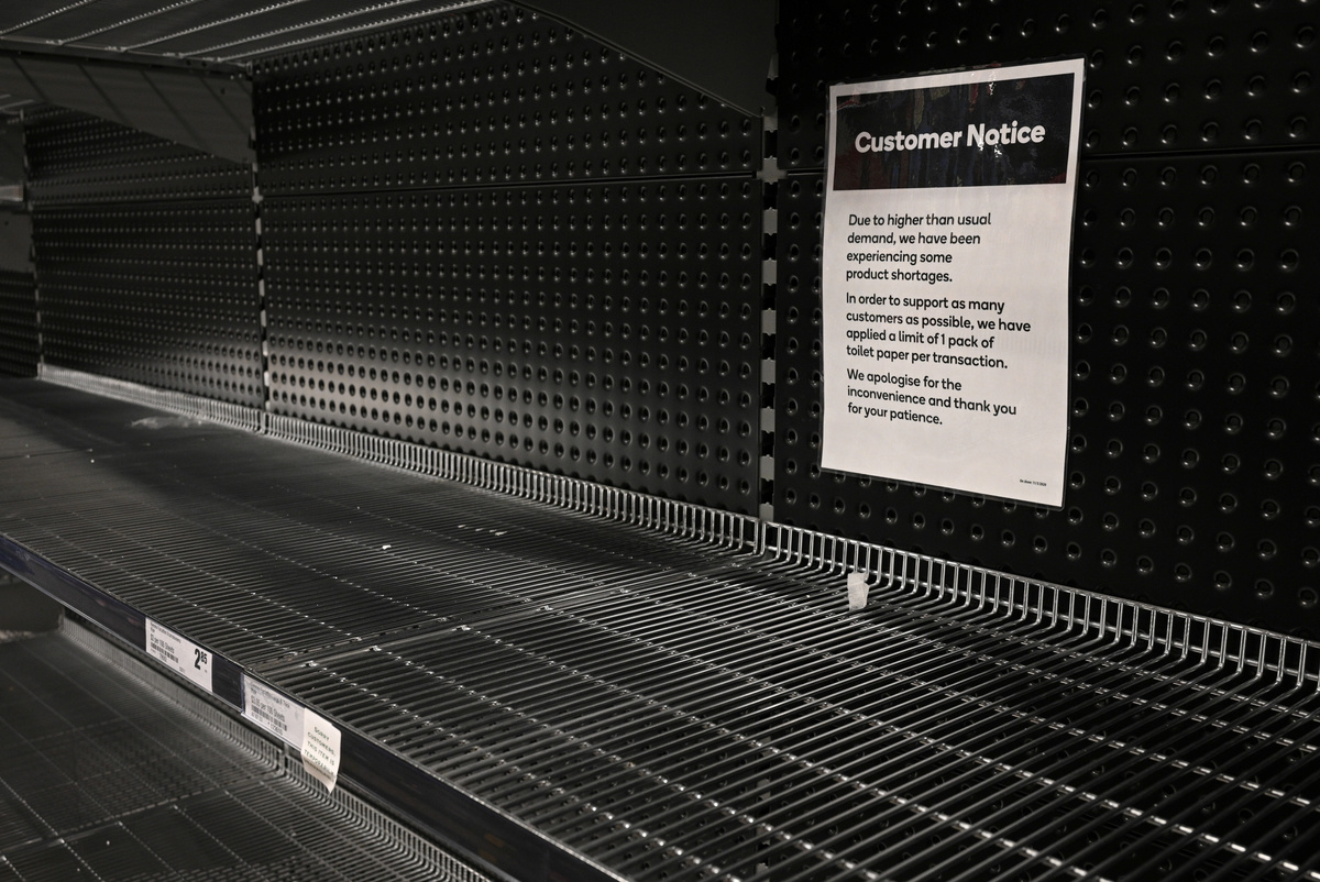 Tables at an open restaurant are seen mostly deserted on a quiet morning at the waterfront of the Sydney Opera House, where scheduled public performances have been cancelled due to the coronavirus disease (COVID-19), in Sydney, Australia, March 18, 2020. REUTERS/Loren ElliottTwo people sit on the mostly deserted steps of the Sydney Opera House, where scheduled public performances have been cancelled due to the coronavirus disease (COVID-19), in Sydney, Australia, March 18, 2020. REUTERS/Loren ElliottA handful of tourists stand atop the mostly deserted steps of the Sydney Opera House, where scheduled public performances have been cancelled due to the coronavirus disease (COVID-19), in Sydney, Australia, March 18, 2020. REUTERS/Loren ElliottA Royal Caribbean International cruise ship is seen at Circular Quay in Sydney Harbour, days after Australian Prime Minister Scott Morrison announced that international cruise ships would no longer be allowed to dock at Australian ports due to the coronavirus disease (COVID-19), in Sydney, Australia, March 18, 2020. REUTERS/Loren ElliottThe mostly deserted steps of the Sydney Opera House, where scheduled public performances have been cancelled due to the coronavirus disease (COVID-19), are seen on a quiet morning in Sydney, Australia, March 18, 2020. REUTERS/Loren ElliottEmpty toilet roll shelves are seen in a grocery store amidst fears of the coronavirus disease (COVID-19) in Sydney, Australia, March 18, 2020. REUTERS/Loren ElliottPedestrians wear protective face masks amidst fears of the coronavirus disease (COVID-19) in Sydney, Australia, March 18, 2020. REUTERS/Loren ElliottA notice to customers regarding product shortages is seen in a grocery store amidst fears of the coronavirus disease (COVID-19) in Sydney, Australia, March 18, 2020. REUTERS/Loren ElliottWomen wear protective face masks amidst fears of the coronavirus disease (COVID-19) in Sydney, Australia, March 18, 2020. REUTERS/Loren ElliottA man wears a protective face mask amidst fears of the coronavirus disease (COVID-19) in Sydney, Australia, March 18, 2020. REUTERS/Loren ElliottA woman wears a protective face mask amidst fears of the coronavirus disease (COVID-19) in Sydney, Australia, March 18, 2020. REUTERS/Loren ElliottEmpty toilet roll shelves are seen in a grocery store amidst fears of the coronavirus disease (COVID-19) in Sydney, Australia, March 18, 2020. REUTERS/Loren ElliottEmpty food shelves are seen in a grocery store amidst fears of the coronavirus disease (COVID-19) in Sydney, Australia, March 18, 2020. REUTERS/Loren Elliott
