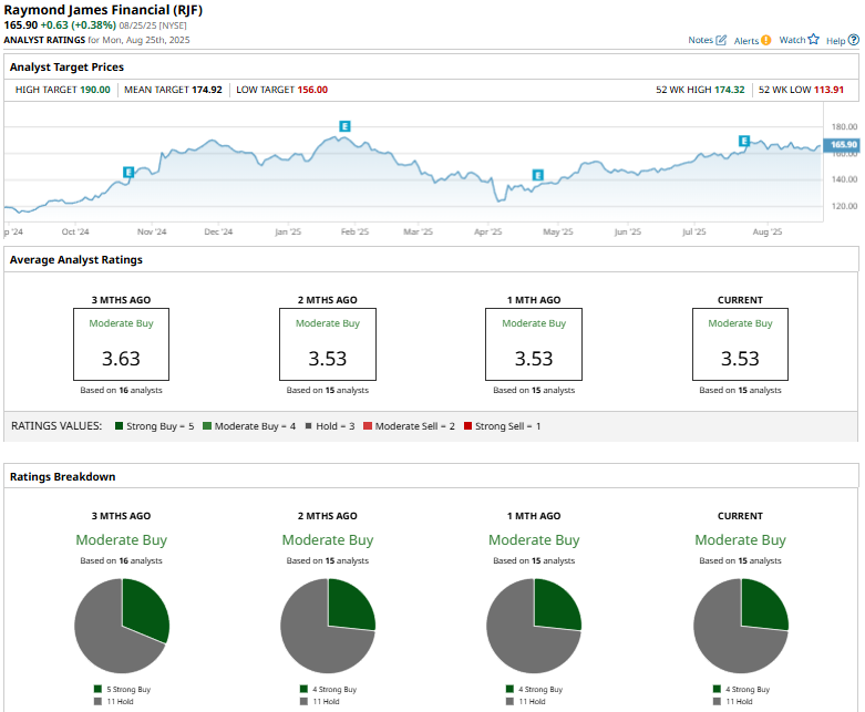 On July 24, 2025, Keefe, Bruyette & Woods analyst Kyle Voigt reaffirmed a “Market Perform” rating on Raymond James Financial and raised the price target from $167 to $170, reflecting a modest 1.8% upward revision and a slightly positive outlook.