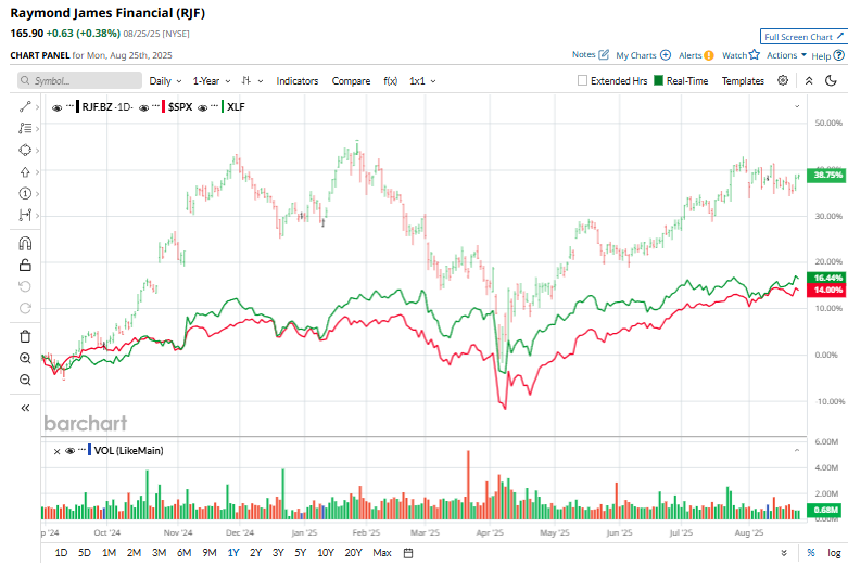 The company's shares have soared 42.1% over the past year, surpassing the broader S&P 500 Index’s ($SPX) 14.3% rise over the same time frame. However, RJF shares are up 6.8% on a YTD basis, lagging behind SPX’s 9.5% rise.