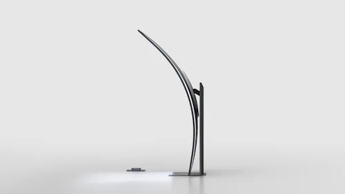 The 16:9 curved (still going strong) Odyssey Ark has a height-adjustable stand that pivots and tilts. Horizontally is how most people will be using it, but if you want, you can rotate it to portrait mode. A flat screen oriented in portrait mode makes sense, but does a curved one? It’s very weird.
