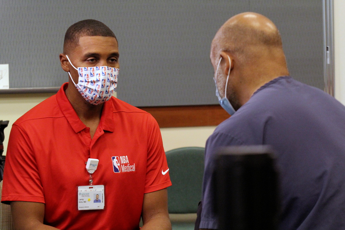 Dr. Leroy Sims, the medical director of the National Basketball Association who managed this past summer's bio-secure bubble in Orlando, joined frontline workers in California in getting the COVID-19 Pfizer vaccine on Friday.