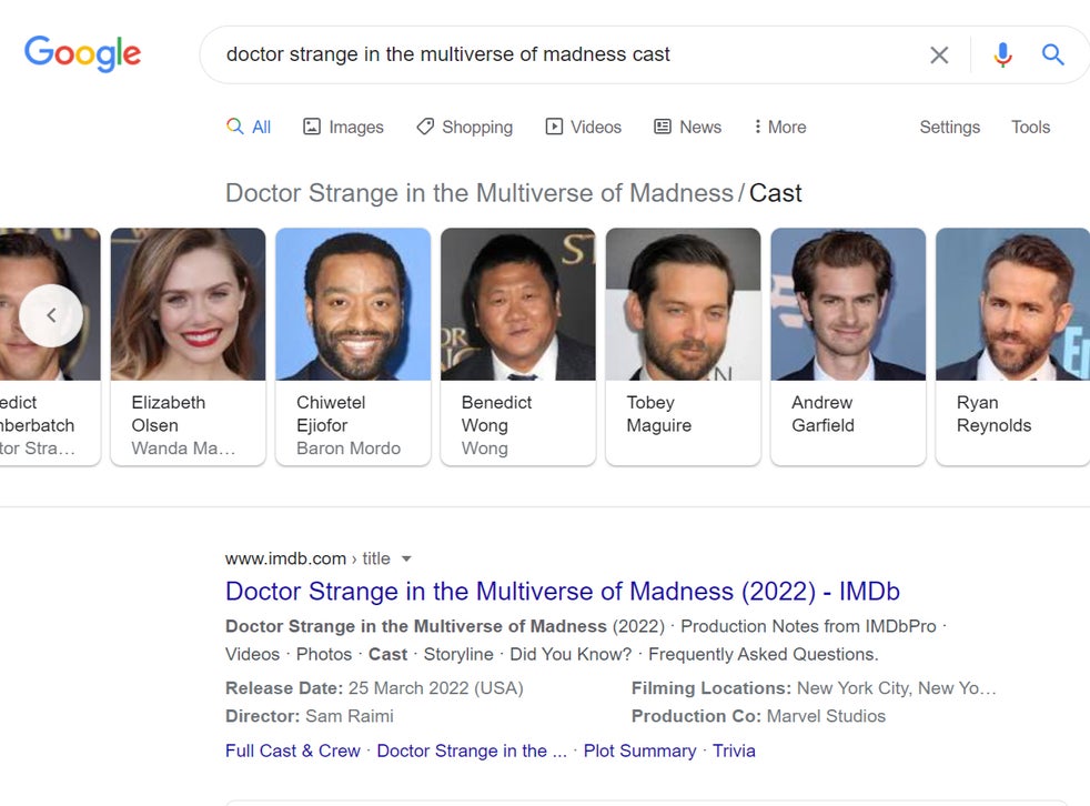 A search for the cast of Doctor Strange in the Multiverse of Madness will reveal a number of castmembers, including Benedict Cumberbatch, who plays Dr Strange, Elizabeth Olsen, who plays Scarlett Witch, Benedict Wong, who plays Wong, and Tom Hiddleston, who plays Loki.