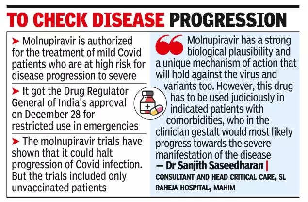 PUNE: Doctors are using the new antiviral pill, molnupiravir, sparingly even among recommended Covid patients with comorbidities, who are at high risk of disease progression to severe.