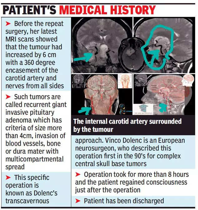 City doctors had diagnosed the woman in her 40s with non-functional pituitary adenoma, a form of tumour of the pituitary gland, and decided to take the risk and go for the complex surgery as it required them to approach through ‘No man’s land’, which has a dense network of important blood vessels.