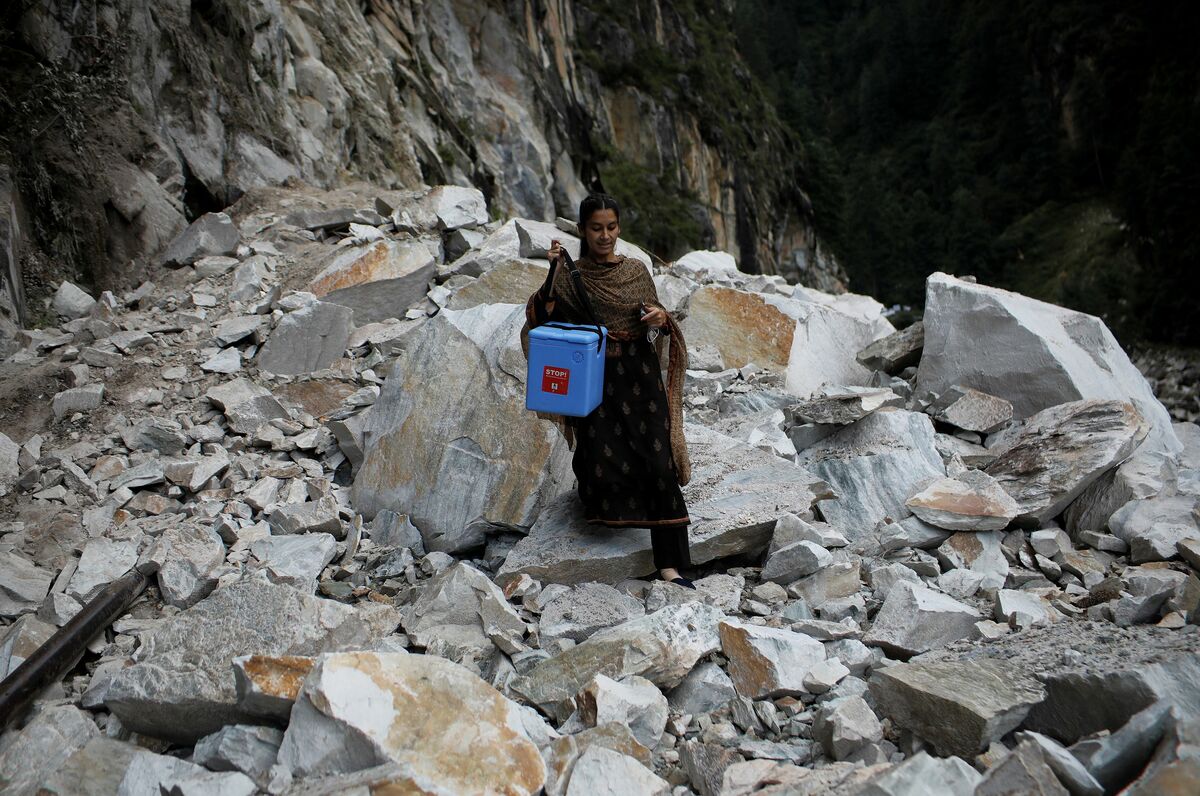 To visit the Indian village of Malana deep in the Himalayas, a COVID-19 vaccination team scrambled over a landslide that blocked the road the day before, scaled a retaining wall and then began a three-hour trek down and up a river valley.