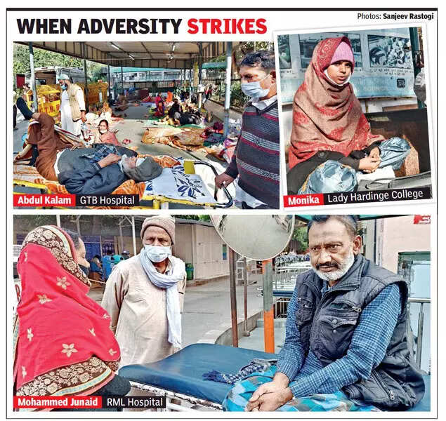 At Sucheta Kriplani Hospital, Sri Krishan, who took a bus from Etah, said he reached Delhi late Tuesday night, along with his wife and their daughter Bhumika (20), who suffers from a stomach problem.