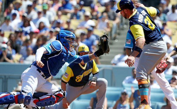 Brewers right-hander Jimmy Nelson held the Dodgers hitless until the sixth. In the second, Adrian Gonzalez lined into an inning-ending double play after Curtis Granderson walked. In the fourth, Granderson missed a home run by a few feet, then struck out looking on a borderline curveball.