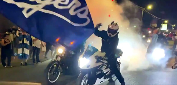 On Sunset Boulevard down the hill from Dodger Stadium, drivers formed an impromptu parade, honking and cheering. Huge crowds also converged on Whittier Boulevard, expressing their joy in what has been such a tough year. Hundreds crowded street in Pacoima, with cars doing doughnuts in intersections.