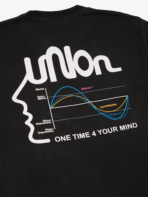 “A little shout out to those of you going through it these days, keep your head up!” reads the product description for Union LA’s bipolar T-shirt, centering around one of the most stigmatized and misunderstood mental illnesses. The rest of the product description is rap lyrics. Madhappy — which claims to be “on a mission to make the world a more optimistic place” — has no ongoing affiliation with any mental health initiatives.