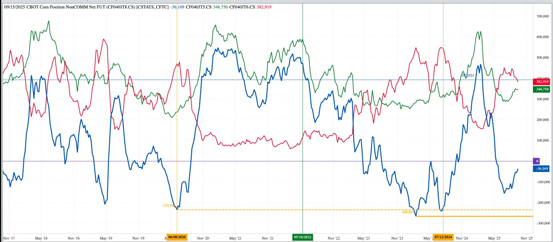 So, did the announcement by Tyson Foods change the long-term investment outlook for the US corn market? After doing a little digging, it is expected to erase “a few million bushels of demand”. The 3% number that was being talked about last week was if ALL corn syrup demand went away. Given all this, my answer would be no, the investment outlook for corn has not been changed. Based on what the market is showing us in late September 2025.