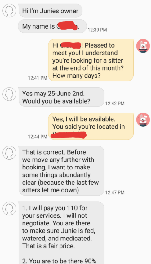 (If you ask us, we think it’s definitely not worth the hassle and the chance of being spied on), and the dog sitter agreed, sending a friendly reply declining the offer: “Hi Claudia, unfortunately I would not be able to meet all the demands. I hope you find a great sitter!”