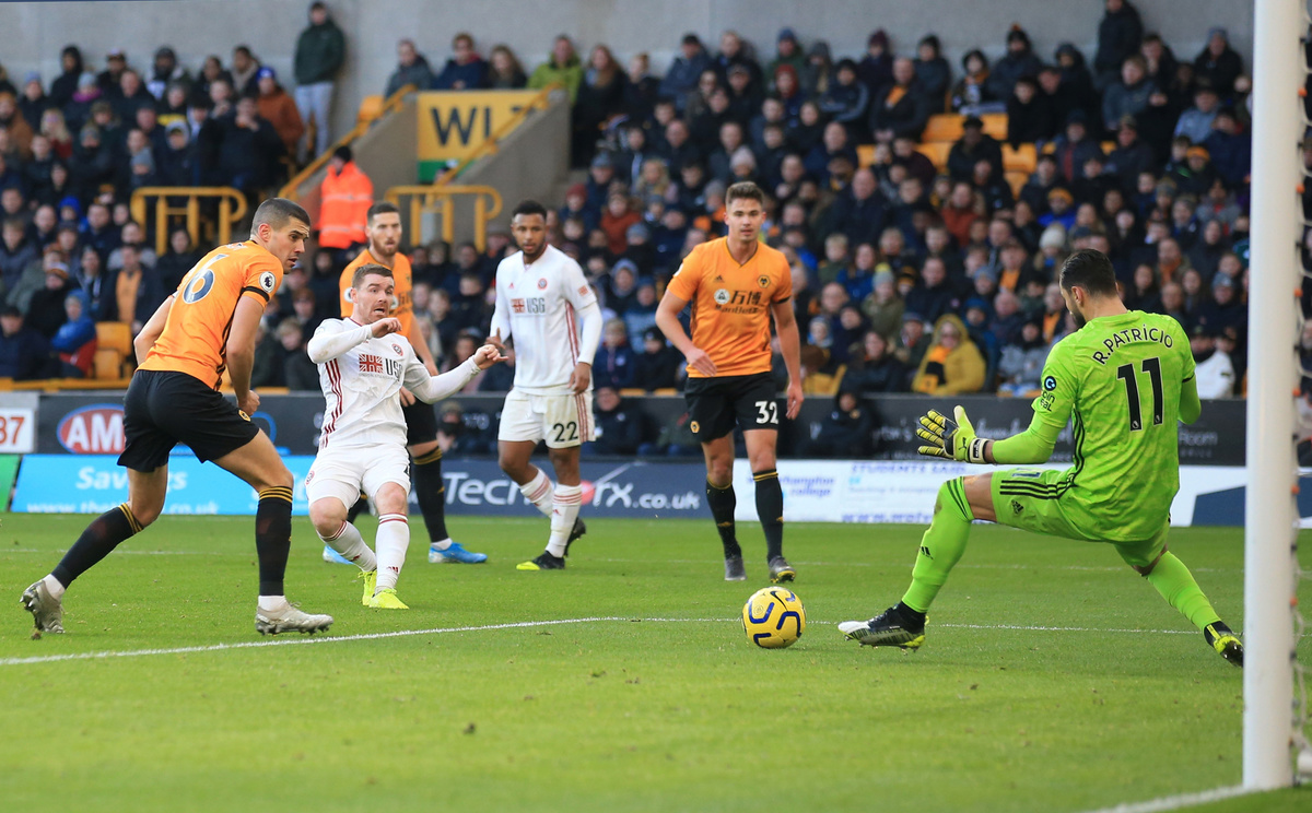 Soccer Football - Premier League - Wolverhampton Wanderers v Sheffield United - Molineux Stadium, Wolverhampton, Britain - December 1, 2019 Wolverhampton Wanderers' Rui Patricio makes a save from Sheffield United's John Fleck REUTERS/Jon Super Soccer Football - Premier League - Wolverhampton Wanderers v Sheffield United - Molineux Stadium, Wolverhampton, Britain - December 1, 2019 Wolverhampton Wanderers' Raul Jimenez in action with Sheffield United's Enda Stevens REUTERS/Jon Super Soccer Football - Premier League - Wolverhampton Wanderers v Sheffield United - Molineux Stadium, Wolverhampton, Britain - December 1, 2019 Sheffield United's Dean Henderson in action REUTERS/Jon Super Soccer Football - Premier League - Wolverhampton Wanderers v Sheffield United - Molineux Stadium, Wolverhampton, Britain - December 1, 2019 Sheffield United's Lys Mousset celebrates scoring their first goal with teammates REUTERS/Jon Super