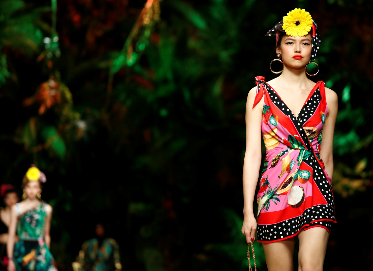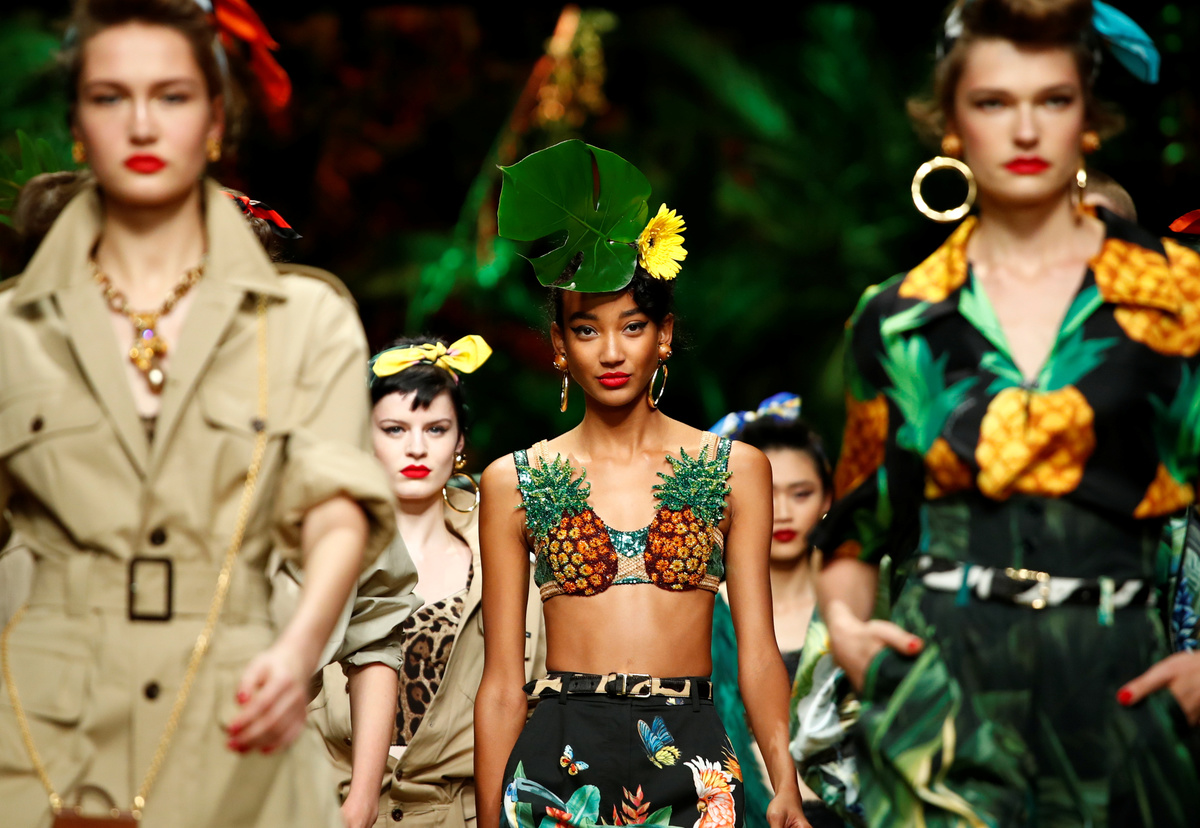 MILAN (Reuters) - With lush greenery for a backdrop, Italian fashion house Dolce & Gabbana took fashionistas on a jungle trek at its catwalk show on Sunday, presenting a spring wardrobe inspired by colorful tropical fauna and flora.