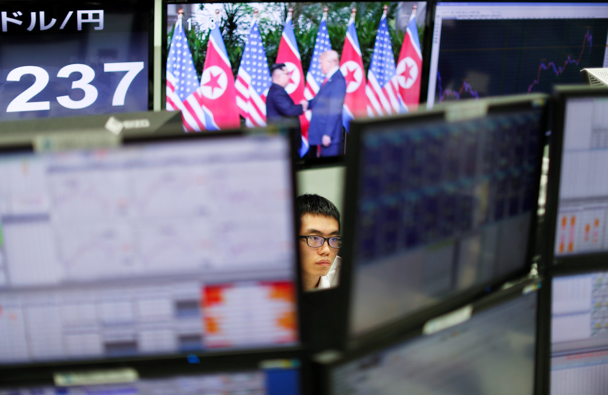In Europe, the regional FTSEurofirst 300 index <.FTEU3> lost 0.02 percent, and the spread between Italian and German 10-year borrowing costs narrowed as the U.S.-North Korea summit drew to a close, following a rally on Monday after reassuring comments from Italy's new economy minister.