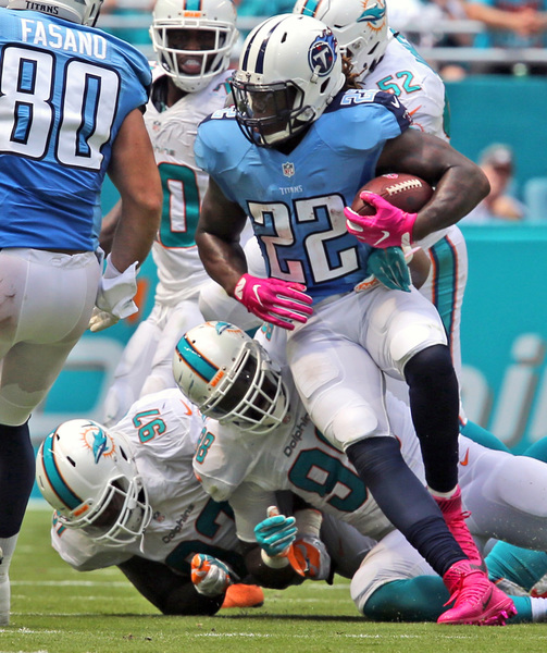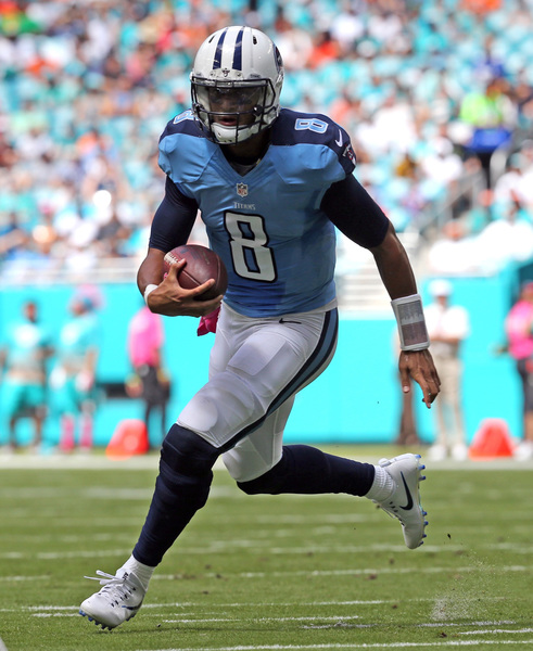 Tennessee went ahead, 14-7, on a 5-yard pass from Mariota to wide receiver Andre Johnson, the former University of Miami standout, capping a 12-play, 76-yard drive. The Titans ran the ball on 10 of those 12 plays, including six consecutive runs for 47 yards.
