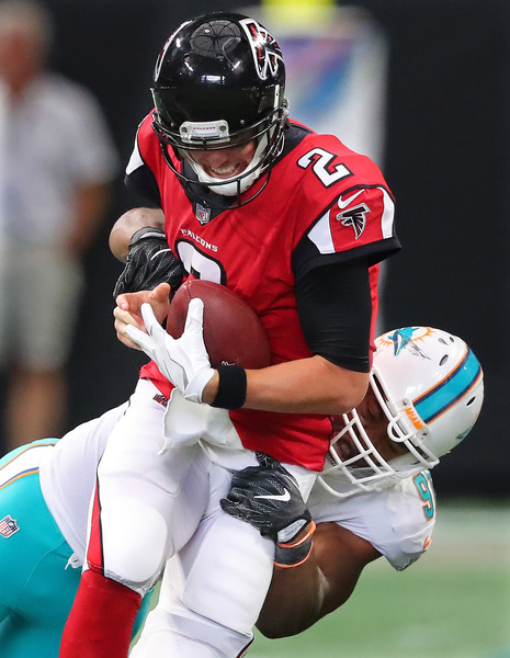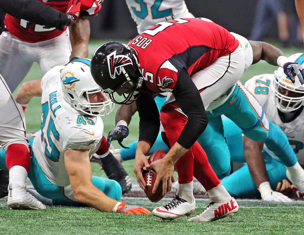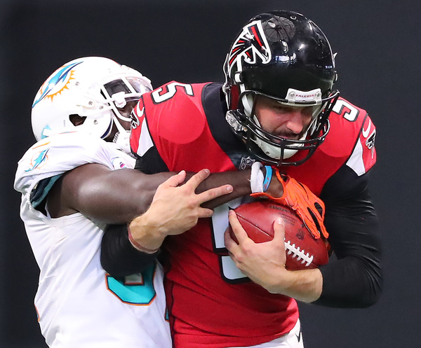 The Dolphins then held again defensively, with William Hayes limiting a Tevin Coleman run to two yards, then dropping him on another run for a loss of eight. Matt Ryan, pressured, threw errantly on 3rd and 16, and suddenly, Miami had the ball with seven minutes left and a chance to go ahead.