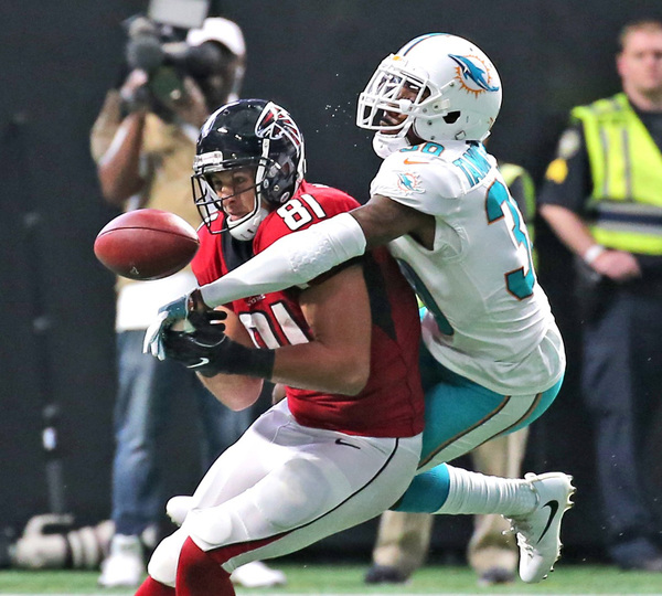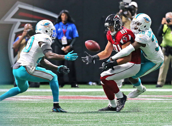 But a 22-completion to Justin Hardy on a 3rd and 10 saved the drive, and an Austin Hooper catch on 3rd and 2 took the ball to Miami's 26. But Reshad Jones' interception ended it.