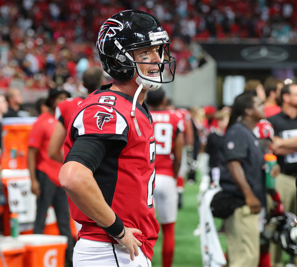 Ryan's 40 yard TD pass to Marvin Hall, badly beating Xavien Howard, put Atlanta up 10-0 in the first quarter.