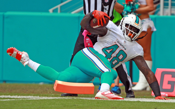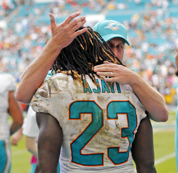 The Dolphins took a 23-8 lead in the third quarter after Abdul-Quddus' interception. Ajayi scored on a 1-yard touchdown, his second of the season, to cap the six-play, 52-yard drive.