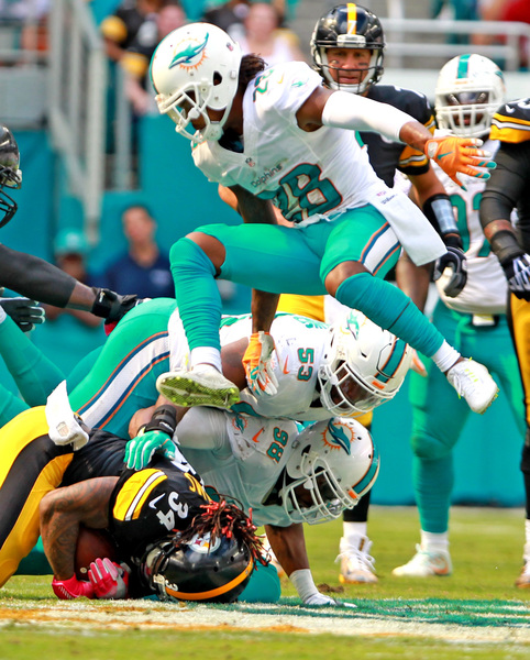 Pittsburgh tried to make it a game late, scoring on a 23-yard pass from Roethlisberger to Ben Hamilton. But the Dolphins recovered the onside kick and the next play Ajayi went 62 yards for his second touchdown of the game and the one that iced the victory.