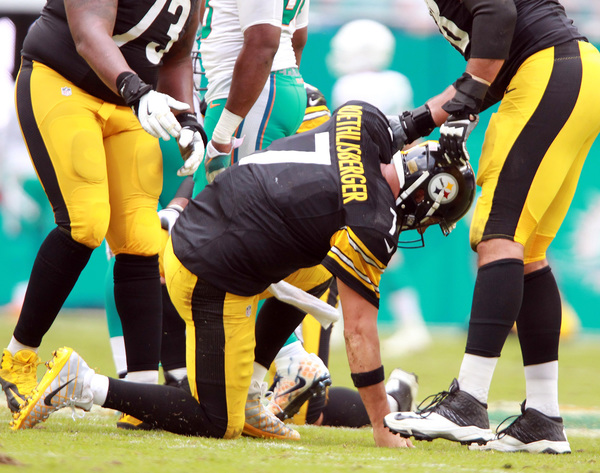 Meanwhile its defense produced two interceptions (one by safety Reshad Jones, the other by safety Isa Abdul-Quddus), two sacks and briefly knocked Roethlisberger out of the game with a left knee injury.