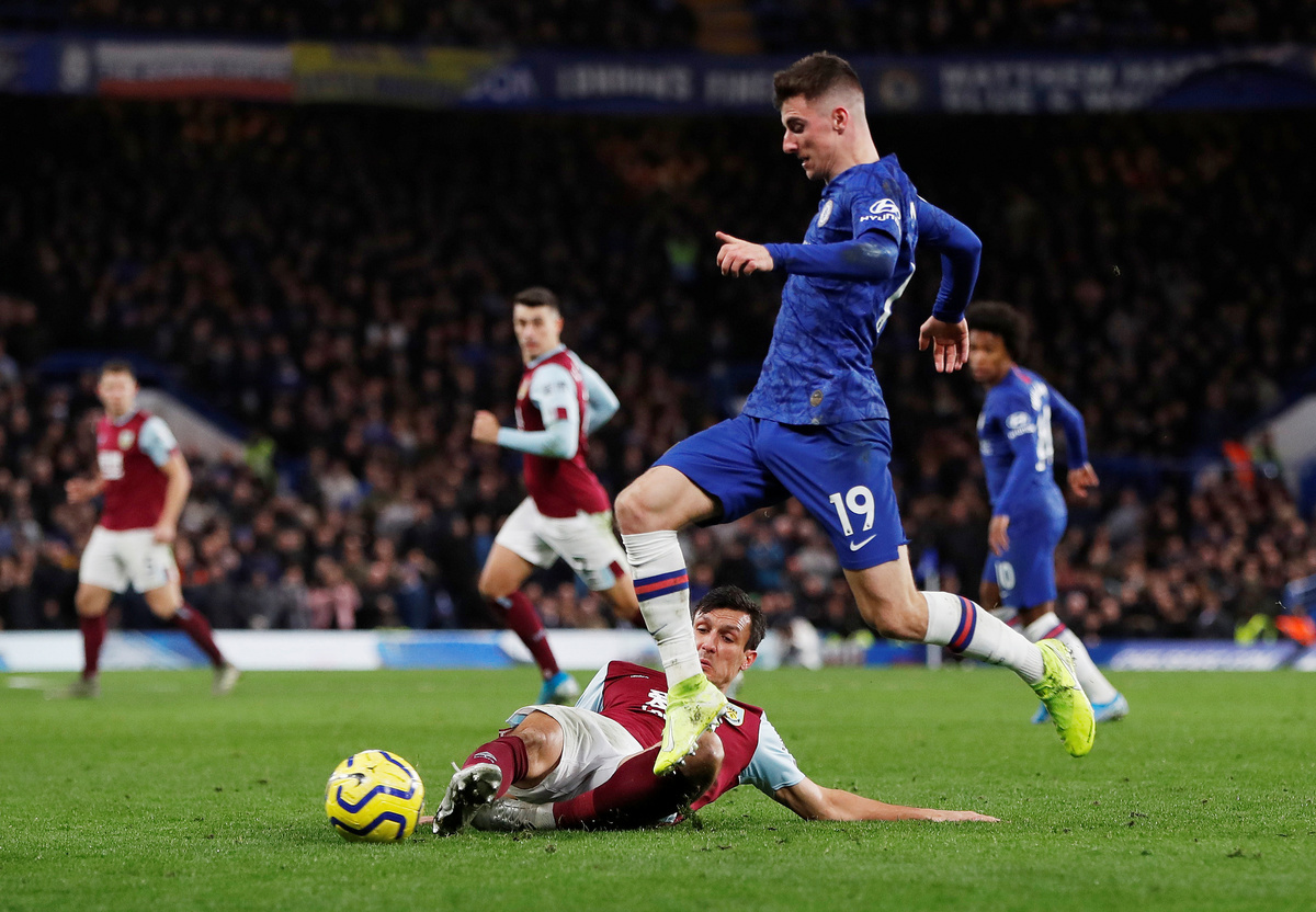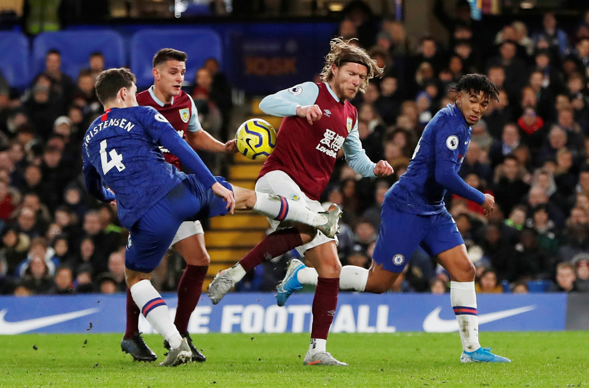 The hosts looked sharp from the start and won a penalty in the 26th minute when Matthew Lowton caught Willian's legs as the Brazilian raced down the left. Italian Jorginho shimmied in the run-up to send Nick Pope the wrong way from the spot.