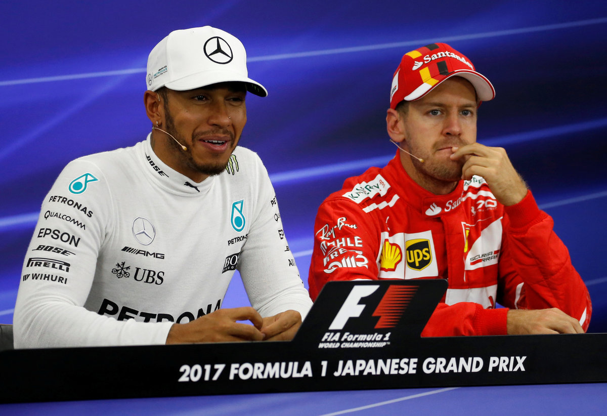 SUZUKA, Japan (Reuters) - Formula One leader Lewis Hamilton smashed the Suzuka track record to seize a dominant Japanese Grand Prix pole position on Saturday with Ferrari rival Sebastian Vettel lining up alongside on the front row.