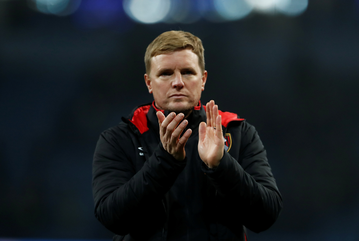 Soccer Football - Premier League - Manchester City vs AFC Bournemouth - Etihad Stadium, Manchester, Britain - December 23, 2017 Manchester City's Raheem Sterling celebrates scoring their second goal with Kyle Walker REUTERS/Andrew Yates Soccer Football - Premier League - Manchester City vs AFC Bournemouth - Etihad Stadium, Manchester, Britain - December 23, 2017 Manchester City's Sergio Aguero in action with Bournemouth's Nathan Ake REUTERS/Andrew Yates Soccer Football - Premier League - Manchester City vs AFC Bournemouth - Etihad Stadium, Manchester, Britain - December 23, 2017 Manchester City's Sergio Aguero in action with Bournemouth's Adam Smith REUTERS/Andrew Yates Soccer Football - Premier League - Manchester City vs AFC Bournemouth - Etihad Stadium, Manchester, Britain - December 23, 2017 Manchester City's Raheem Sterling scores their second goal past Bournemouth's Asmir Begovic REUTERS/Andrew Yates Soccer Football - Premier League - Manchester City vs AFC Bournemouth - Etihad Stadium, Manchester, Britain - December 23, 2017 Bournemouth manager Eddie Howe looks dejected after the match Soccer Football - Premier League - Manchester City vs AFC Bournemouth - Etihad Stadium, Manchester, Britain - December 23, 2017 Manchester City's Danilo celebrates scoring their fourth goal REUTERS/Andrew Yates Soccer Football - Premier League - Manchester City vs AFC Bournemouth - Etihad Stadium, Manchester, Britain - December 23, 2017 Manchester City manager Pep Guardiola Action Images via Reuters/Lee Smith Soccer Football - Premier League - Manchester City vs AFC Bournemouth - Etihad Stadium, Manchester, Britain - December 23, 2017 Manchester City's Sergio Aguero in action with Bournemouth's Adam Smith REUTERS/Andrew Yates Soccer Football - Premier League - Manchester City vs AFC Bournemouth - Etihad Stadium, Manchester, Britain - December 23, 2017 Manchester City's Ederson Action Images via Reuters/Lee Smith Soccer Football - Premier League - Manchester City vs AFC Bournemouth - Etihad Stadium, Manchester, Britain - December 23, 2017 Manchester City's Raheem Sterling scores their second goal past Bournemouth's Asmir Begovic REUTERS/Andrew Yates