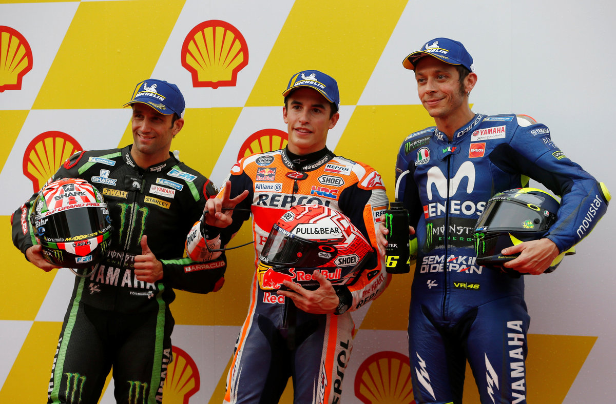KUALA LUMPUR (Reuters) - MotoGP champion Marc Marquez was handed a six-place grid drop after securing his 80th career pole position on Saturday, with Johann Zarco taking over the top slot after a rain-delayed qualifying session for the Malaysian Grand Prix.