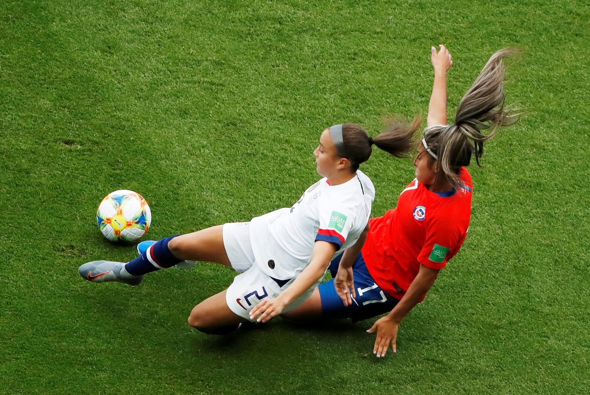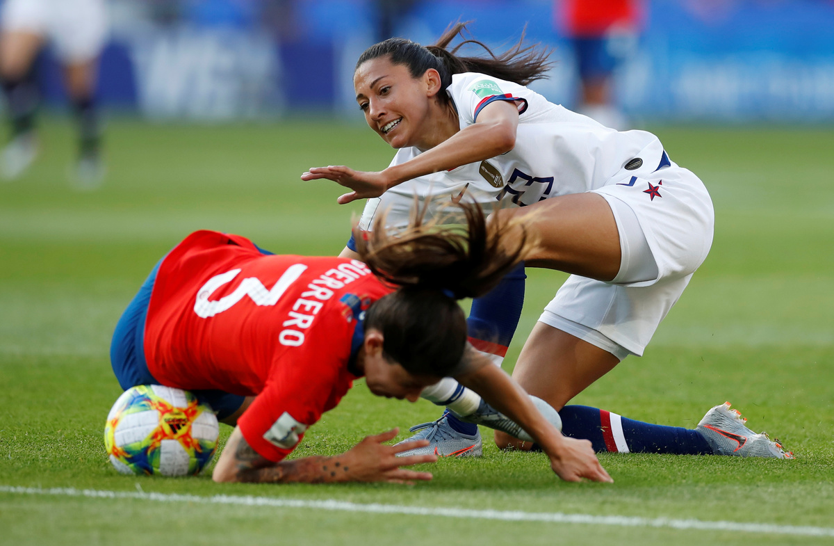 PARIS (Reuters) - Veteran striker Carli Lloyd scored twice as the United States beat Chile 3-0 on Sunday, sending the current holders into the last 16 at the Women's World Cup despite some remarkable resistance from the opposition goalkeeper Christiane Endler.