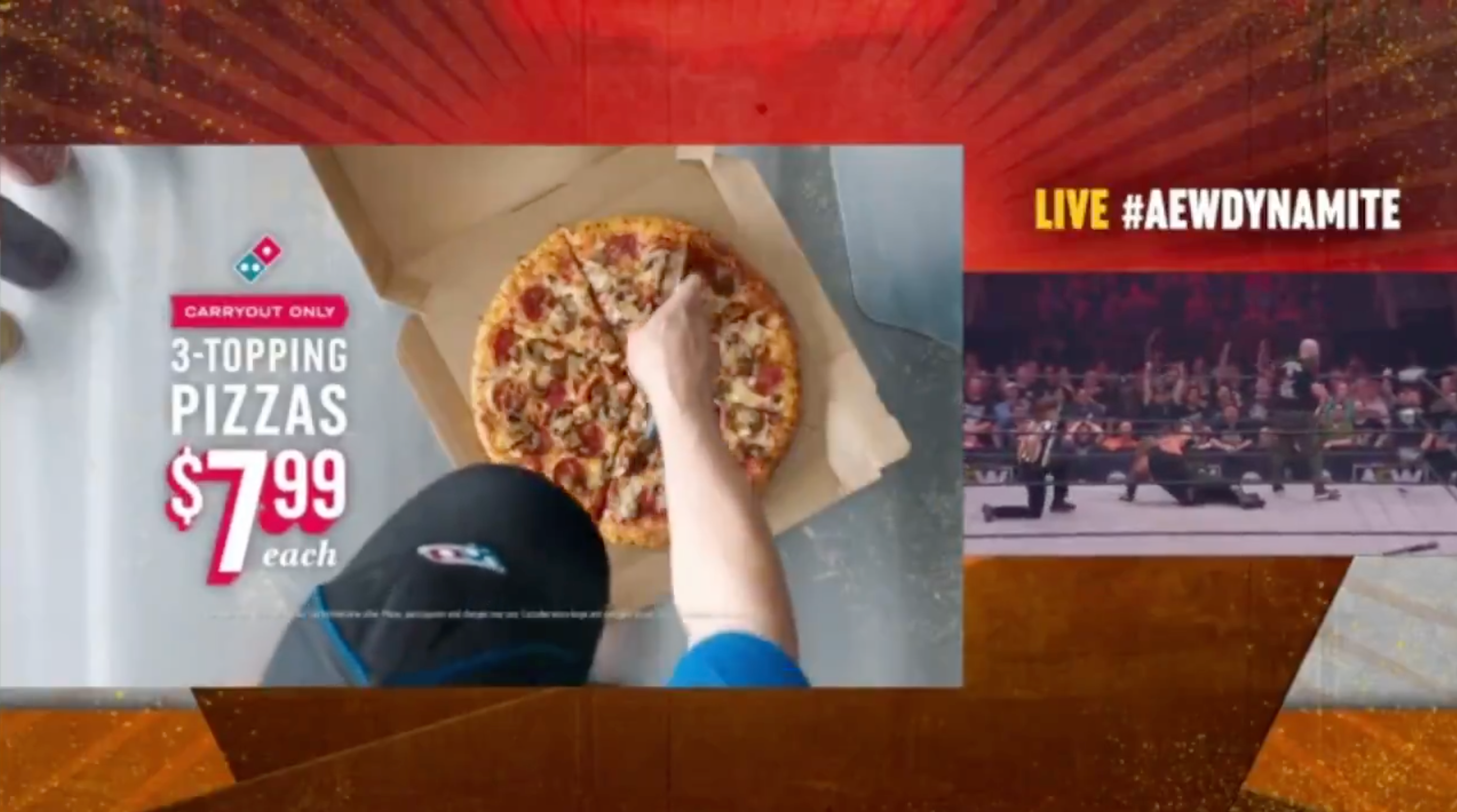 According to FOS, WarnerMedia are now hoping that Domino’s will buy ad space once more for the AEW: Dynamite on Wednesday.