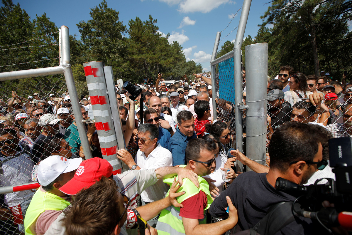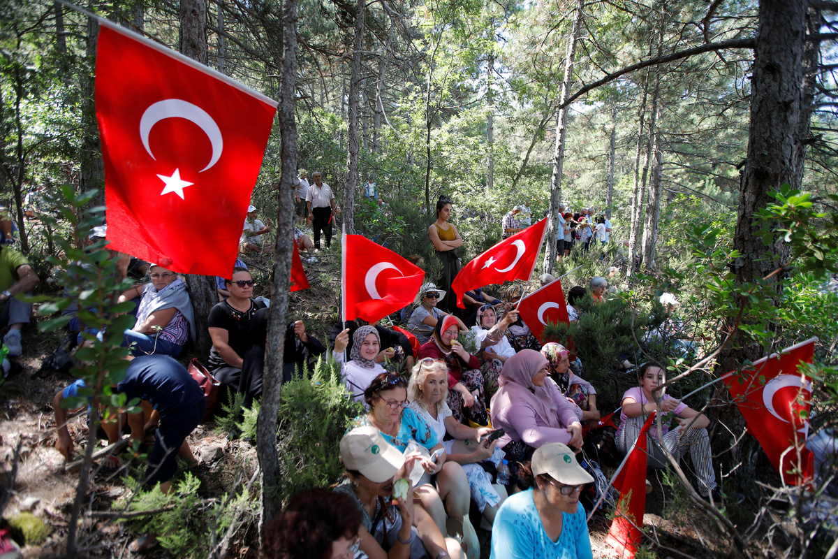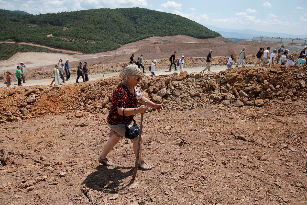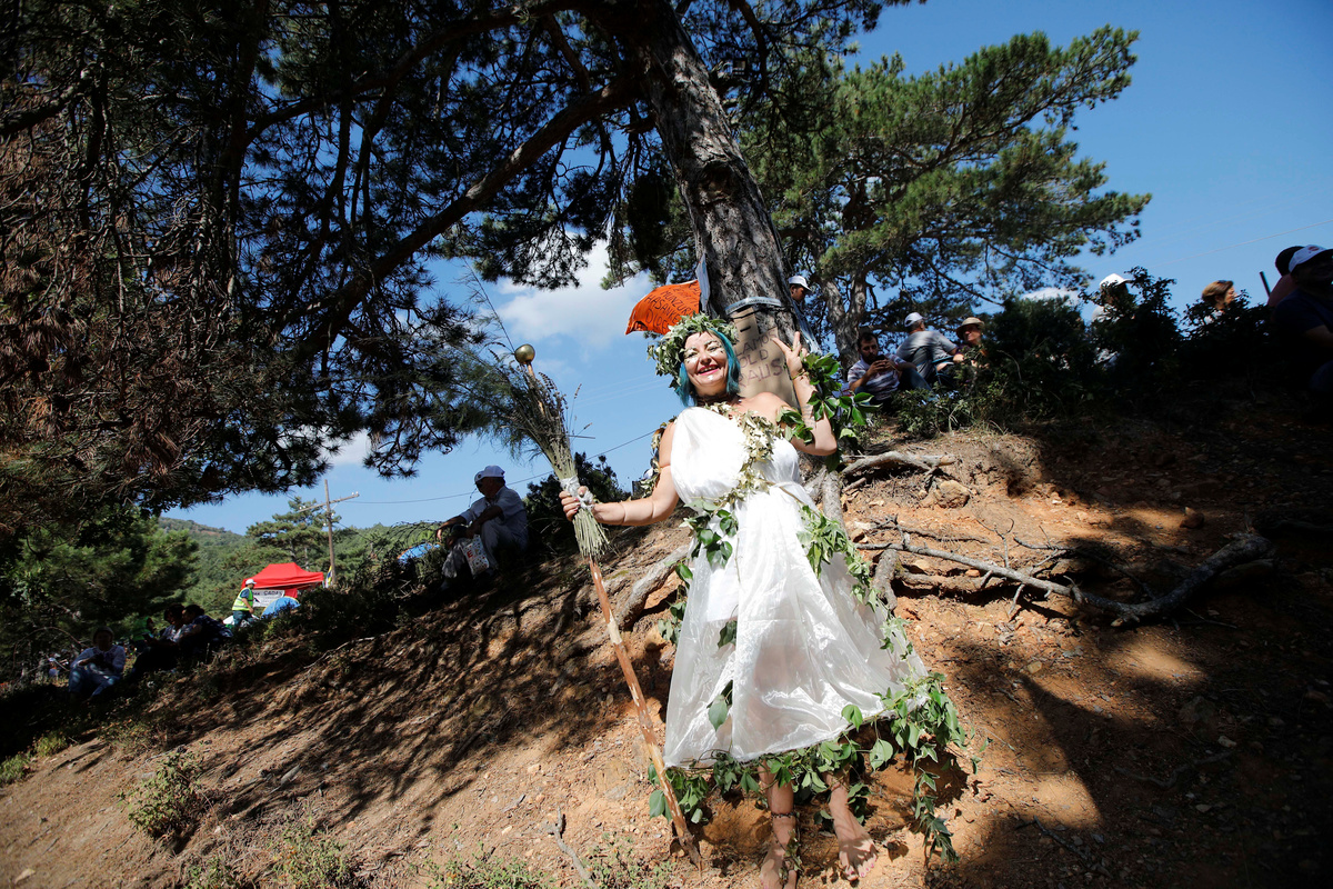 Asim Yildiz, 58, said he visits the area every summer and that he joined the protests on Monday to raise awareness about the environmental impact of the gold mining project. "This is our nature, our right. What can we give to future generations? Will we give them the arid hilltop or the blue sea?"
