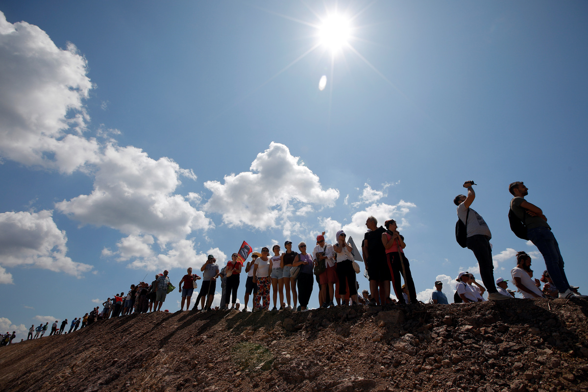 On Monday, some 5,000 protesters from across the country gathered on a hill near the planned mine site carrying signs reading: "Don't come if you like gold," and "We can do without gold, we can't do without the Kaz Mountains."