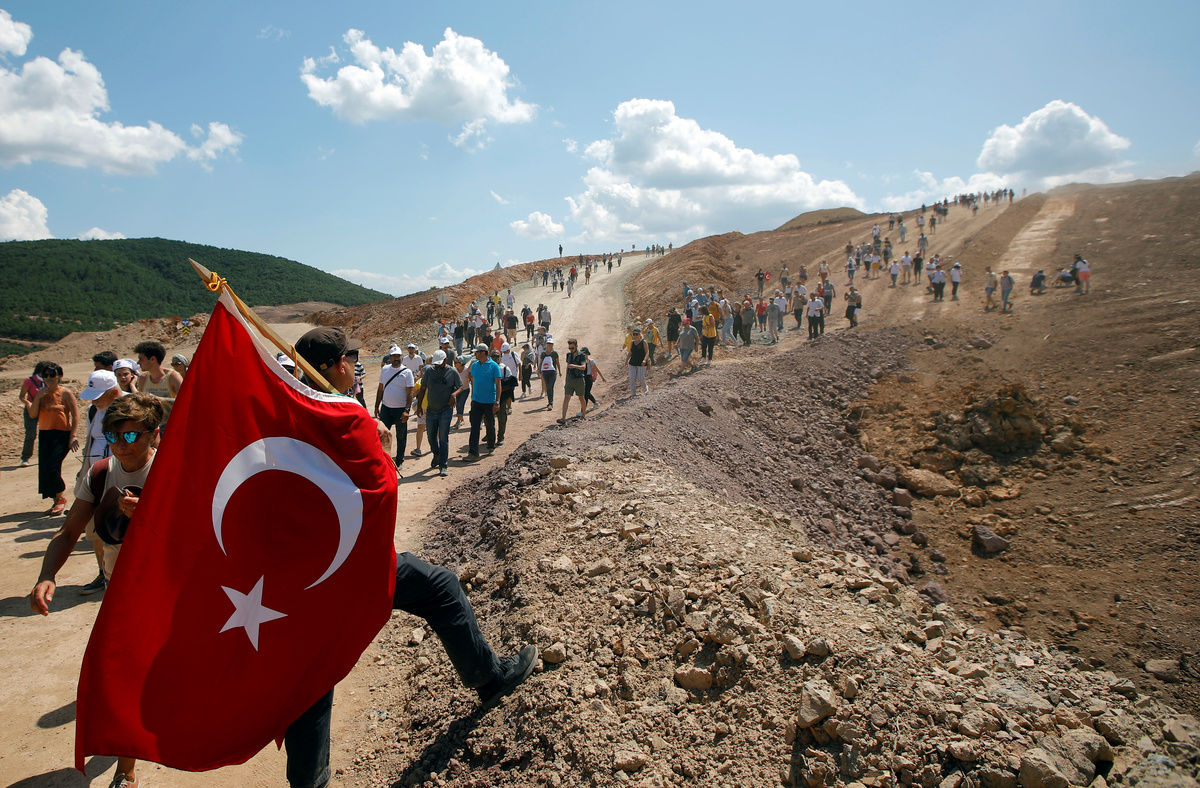 Near the town of Kirazli in Turkey's Canakkale province, a few dozen environmentalists have slept in tents since July 26 as part of what they call a "Watch for Water and Conscience".