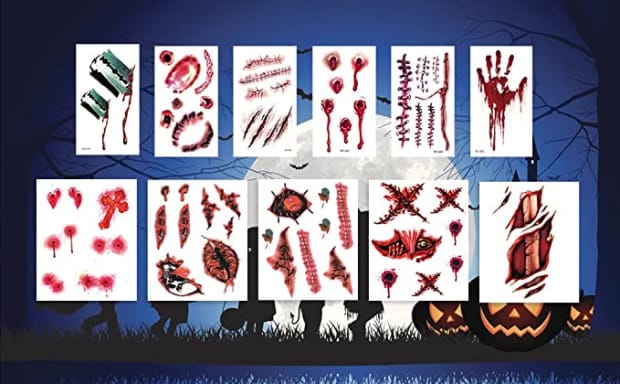 The Zombie Makeup Tattoos feature 11 sheets of scars, blood, and wounds with stitches to create the ultimate spooky Halloween costume. You’ll receive 75 tattoos in all, which means you’ll have enough to create a vampire family.